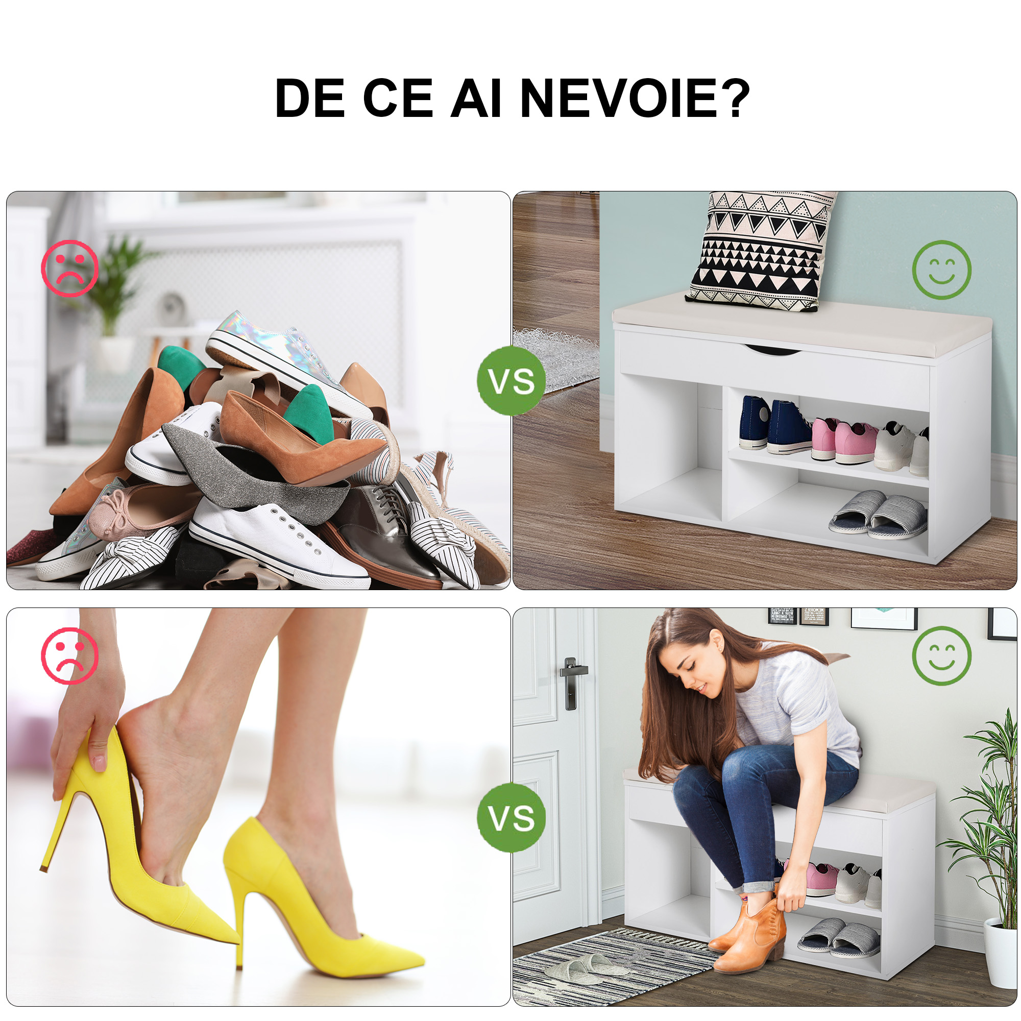 Organizeaza incaltamintea si creeaza un spatiu de relaxare cu dulapul [BRAND NAME] compact: banca cu scaune tapitate rabatabile si compartiment pentru incaltaminte. Finisaj alb modern, ideal pentru holuri mici. Cuvintecheie: dulap pantofi hol, mobilier hol cu banca, dulap incaltaminte rabatabil.