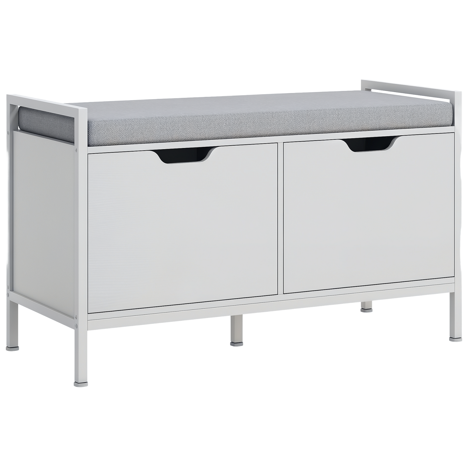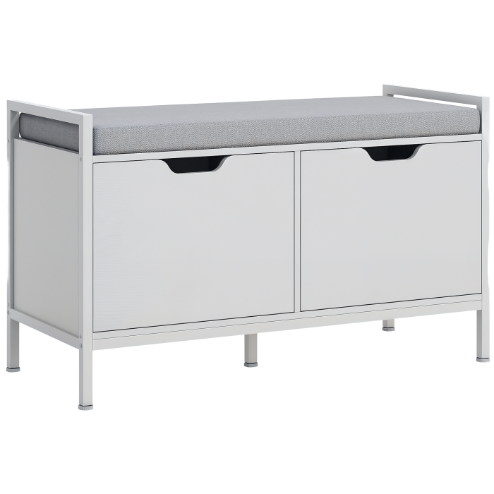 Organizeaza-ti pantofii intr-un mod simplu si elegant cu dulapul nostru pentru pantofi [BRAND NAME]. Fiind dotat cu doua dulapuri, acest dulap pentru pantofi de la intrare ofera mult spatiu pentru a depozita pana la 4 perechi de pantofi, in timp ce perna superioara iti permite sa-ti schimbi pantofii in totala comoditate. Designul sobru cu material textil gri se integreaza perfect in orice ambient casnic, iar pantofii tai vor fi mereu ordonati si la adapost de priviri.