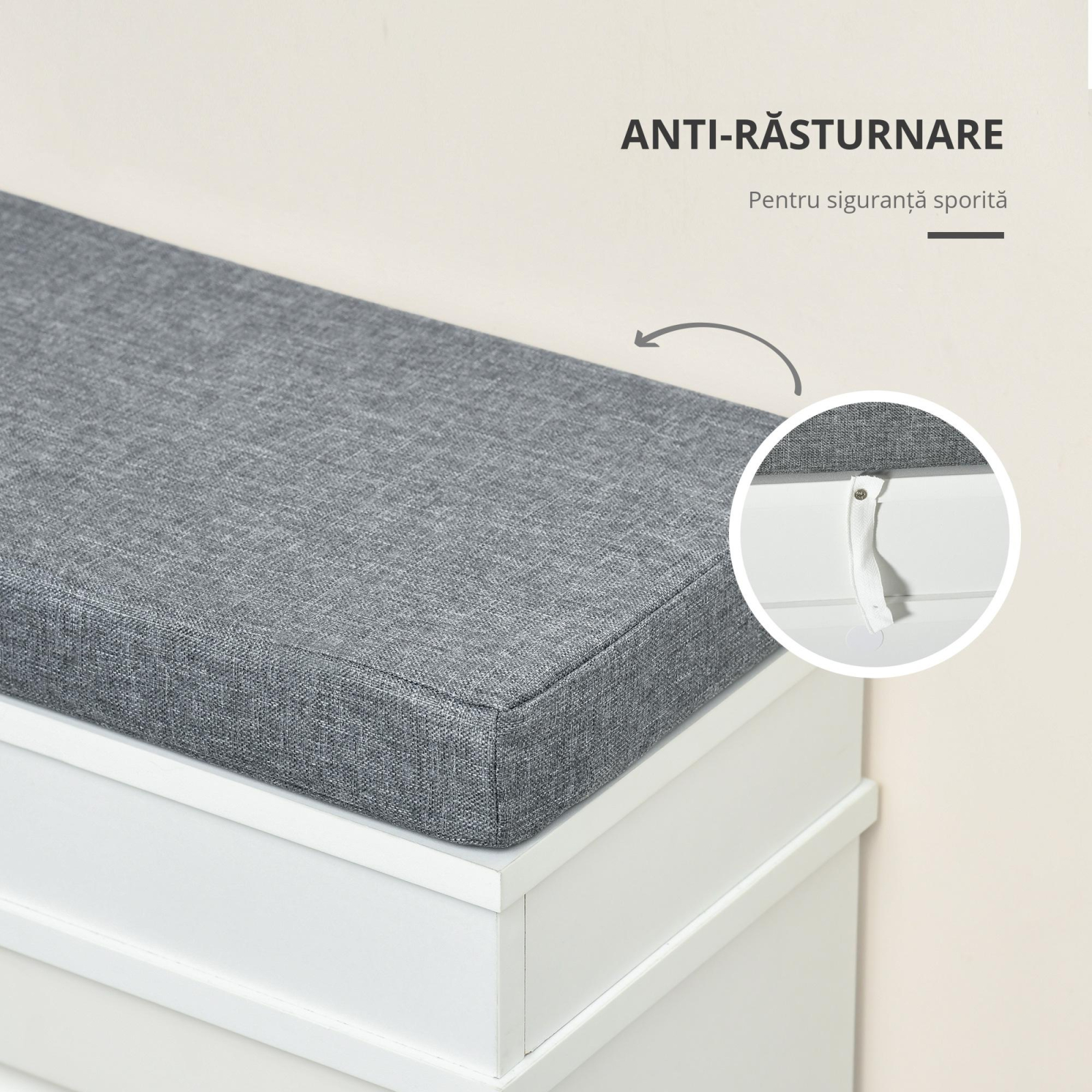 Organizeaza-ti incaltamintea cu stil folosind bancheta [BRAND NAME]. Realizata din lemn robust, include doua sertare spatioase si un raft pentru pana la 8 perechi. Perna moale asigura confort atunci cand te incalti, iar designul elegant se potriveste in holuri moderne sau dressinguri. O solutie practica si estetica pentru ordinea zilnica.