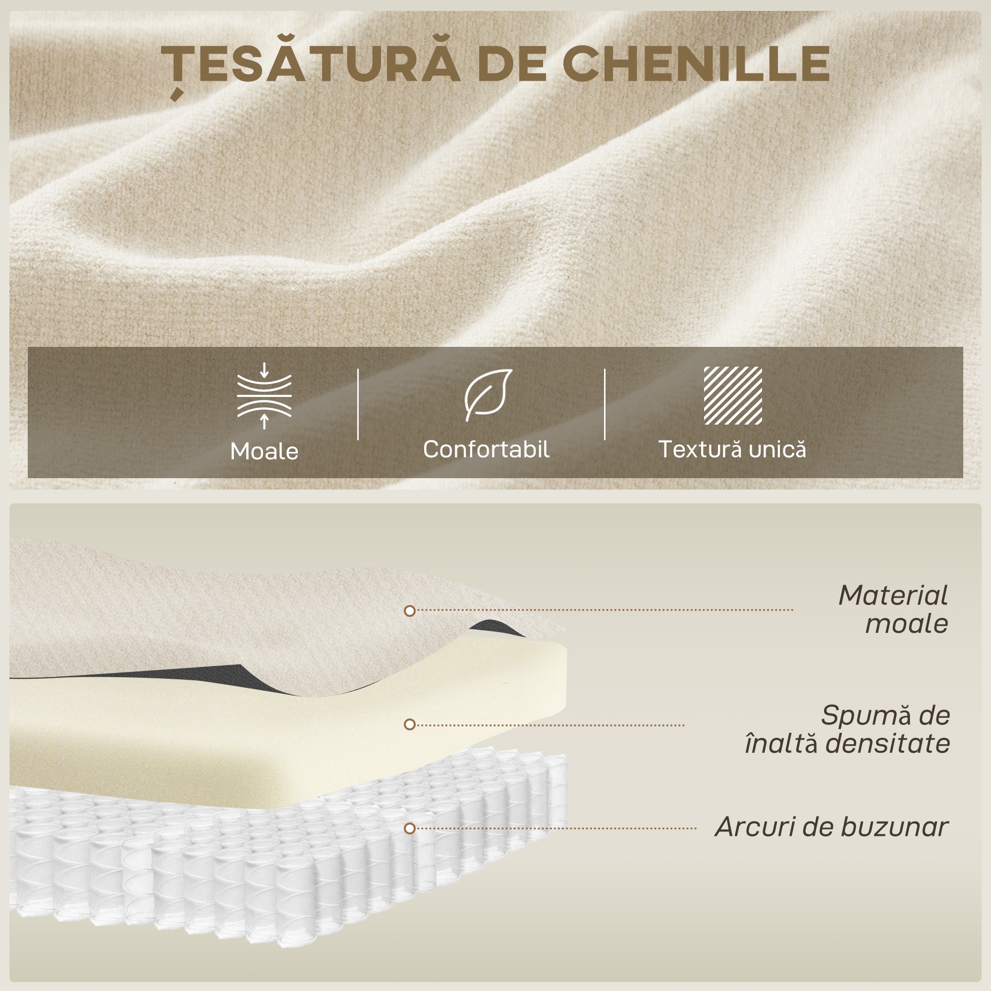 Transforma-ti spatiul cu canapeaua cu 3 locuri [BRAND NAME]: 203 cm de sezut pentru relaxare alaturi de familie. Confort asemanator unui nor datorita arcurilor individuale si spumei cu densitate mare. Tapitata cu tesatura din catifea crem, imbina eleganta cu un design minimalist. Completa cu trei perne, este perfecta pentru relaxare.