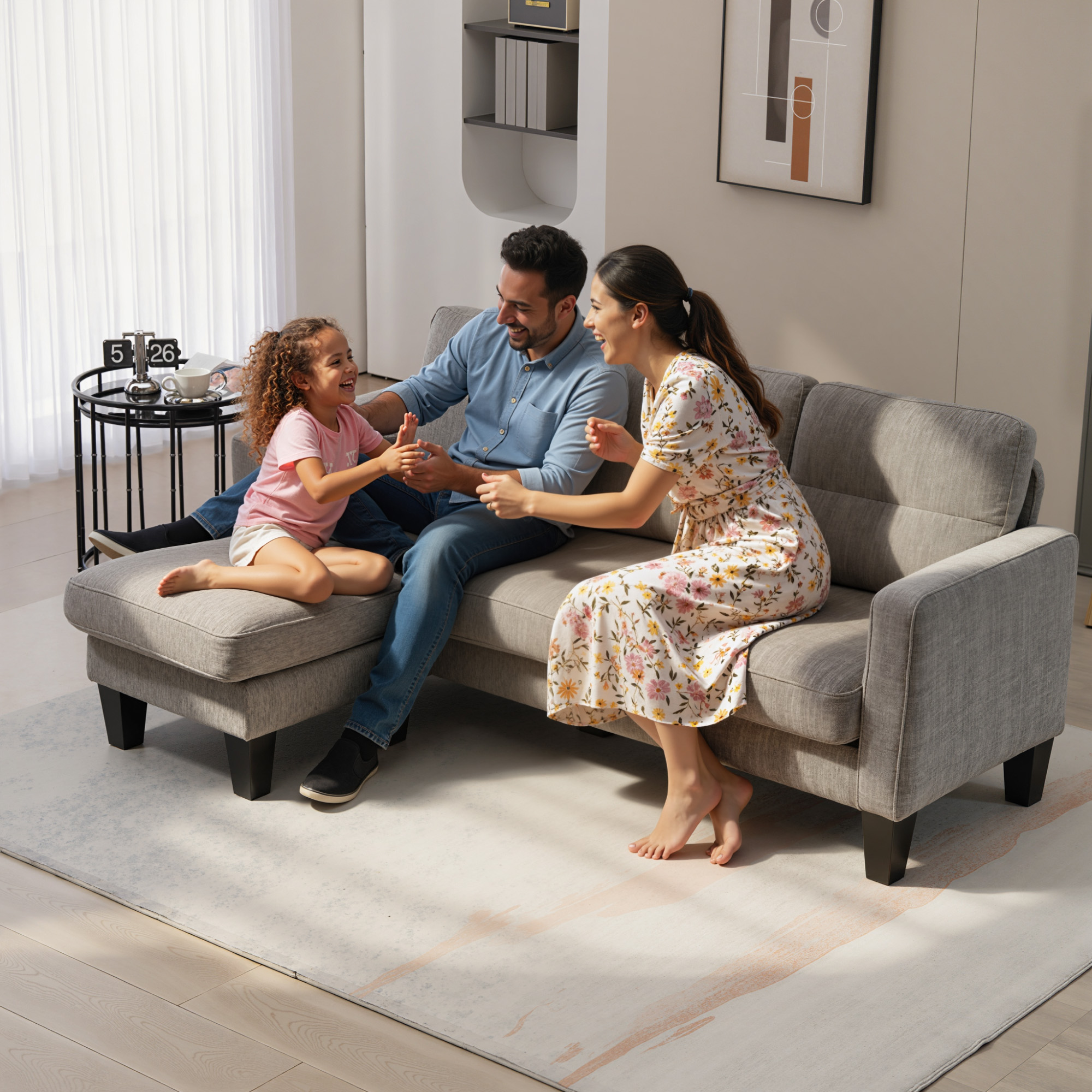 - • Designul in forma de L al acestui canapea de living este ideal pentru a fi amplasat in sufragerie, birou, dar si in dormitor