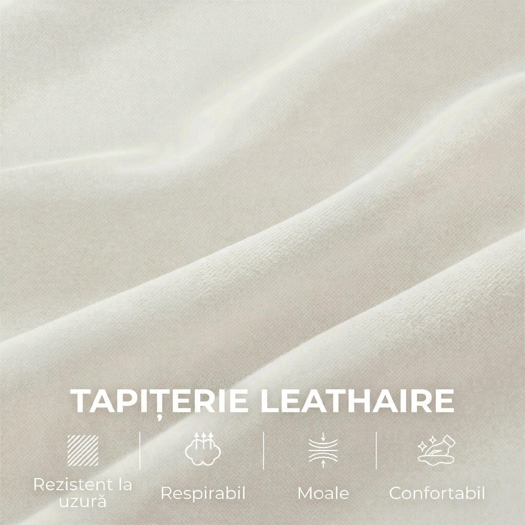 - • Tapitata cu material textil respirabil care imita pielea, delicat pentru piele si usor de curatat