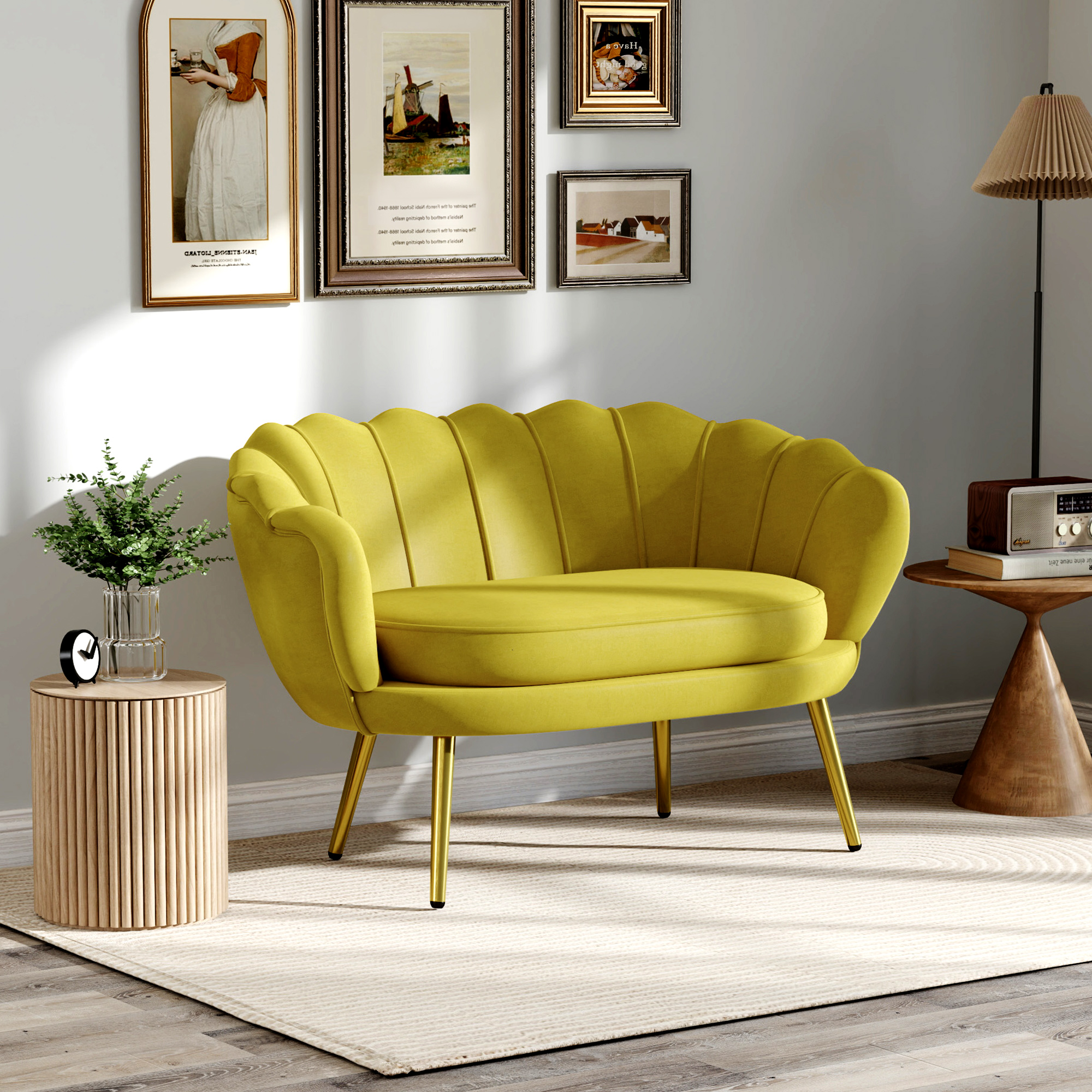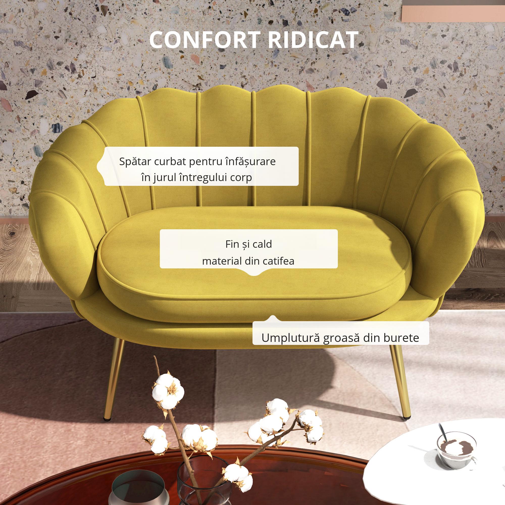 - CONFORTABIL: Aceasta canapea mica este tapitata in intregime cu burete si are un spatar inalt si imbratisator. Husa este confectionata din catifea moale galbena, usor de curatat.