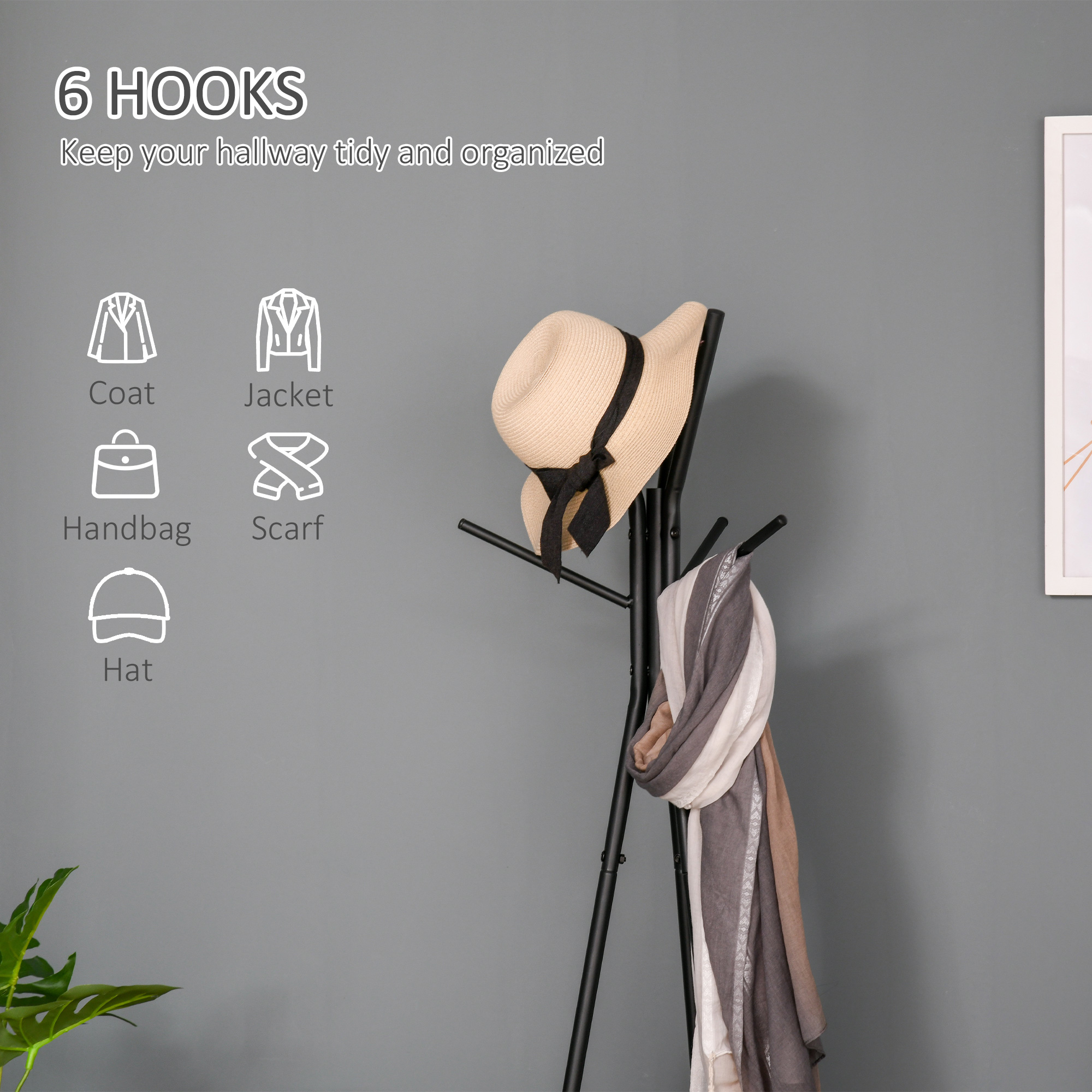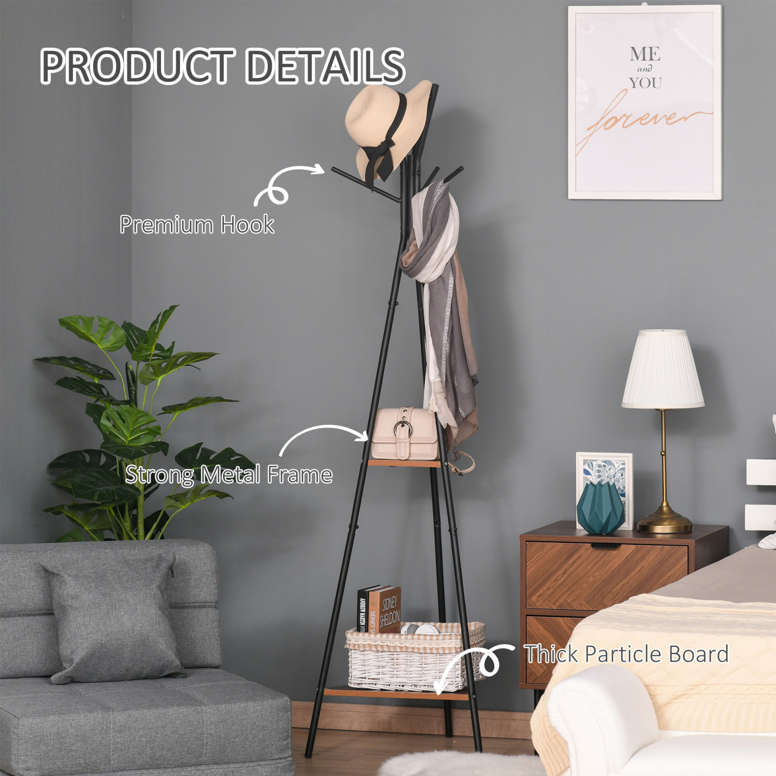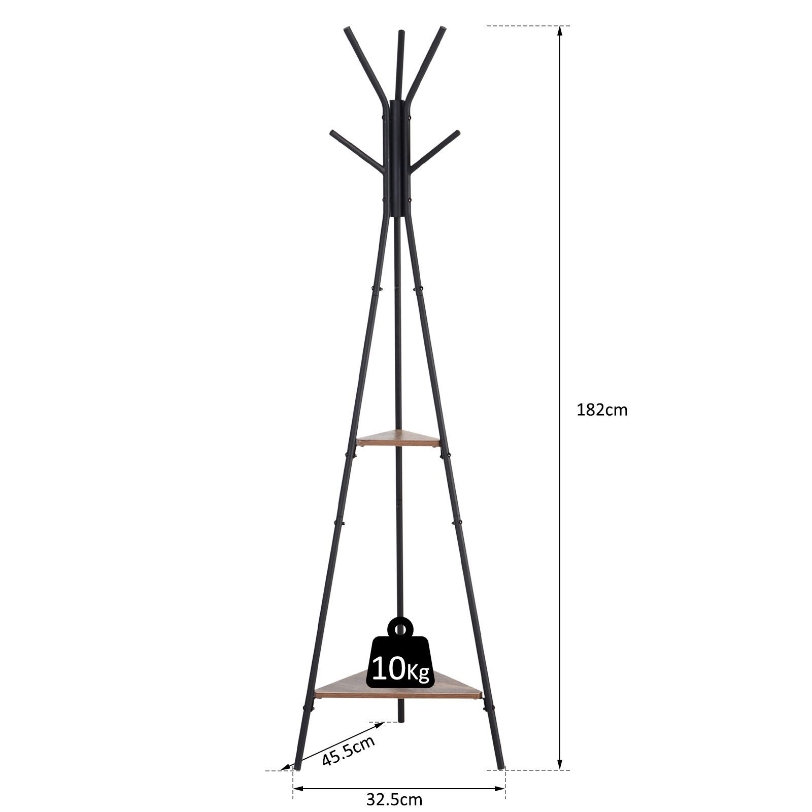 Acest cuier de haine industriale [BRAND NAME] este o piesa exclusiva, care va aduce o nota de design in casa dvs. Forma sa speciala este echipata cu doua rafturi triunghiulare din lemn, utile pentru aranjarea accesoriilor, in timp ce capetele raftului sunt tesite astfel incat sa nu se incurce in hainele dvs. Confortabil si practic, il puteti plasa intr-un colt al intrarii sau biroului: Suntem siguri ca, in ambele cazuri, nu va trece neobservat!