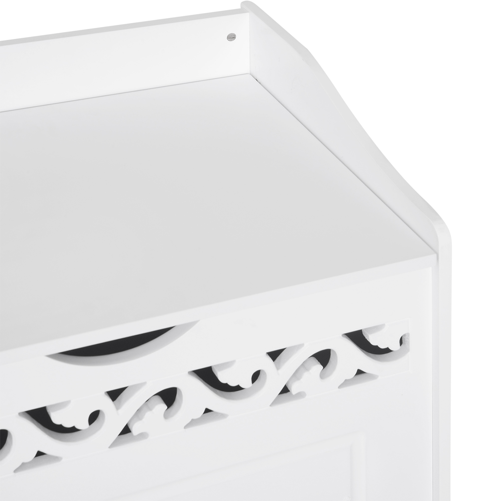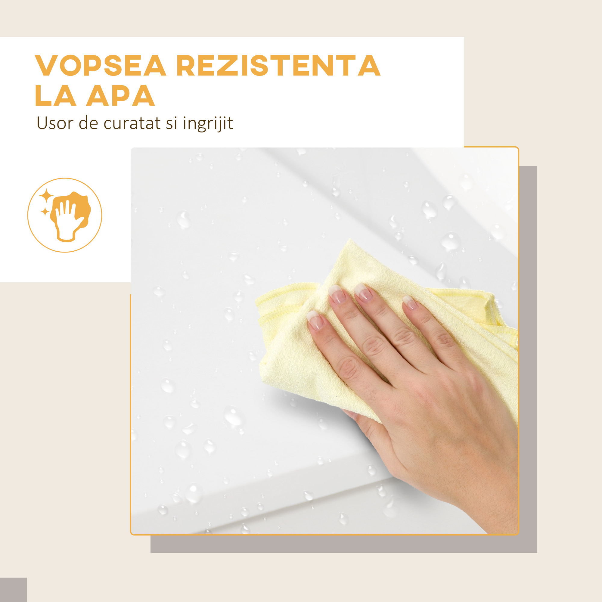 [BRAND NAME] dulap din MDF, 55x34x58 cm, alb ideal pentru depozitarea lenjeriilor, articolelor vestimentare si alte textile. Poate fi asezat in camera de zi, dormitor, camera copiilor etc. Dulapul are un design modern si elegant. Realizat din materiale de calitate superioara pentru a fi cat mai rezistent in timp. [BRAND NAME] dulap din MDF, 55x34x58 cm, alb vopsit cu un strat de vopsea rezistenta la apa si alte intemperii. Usor de curatat si de intretinut.