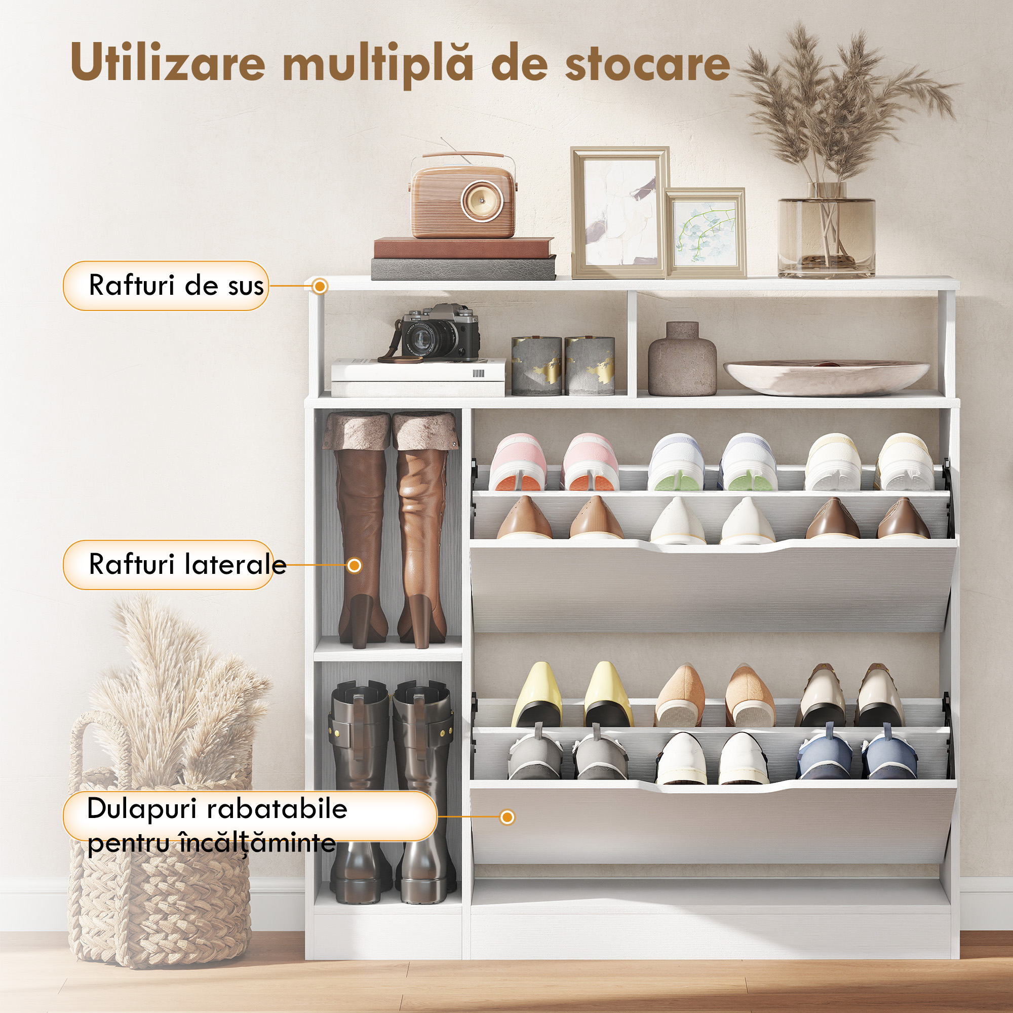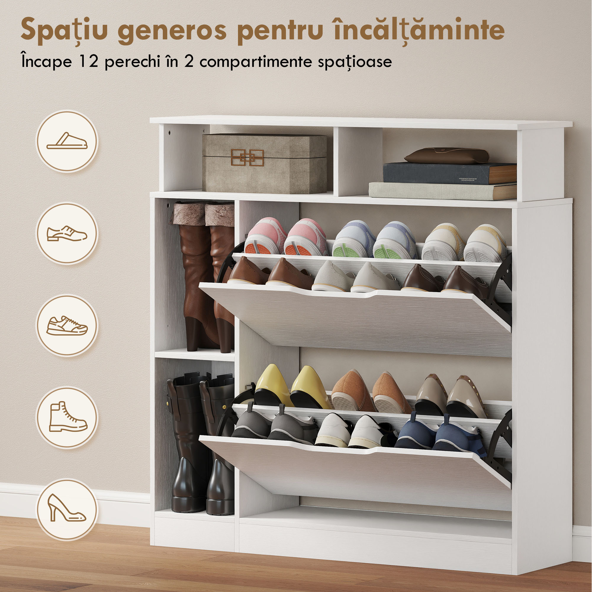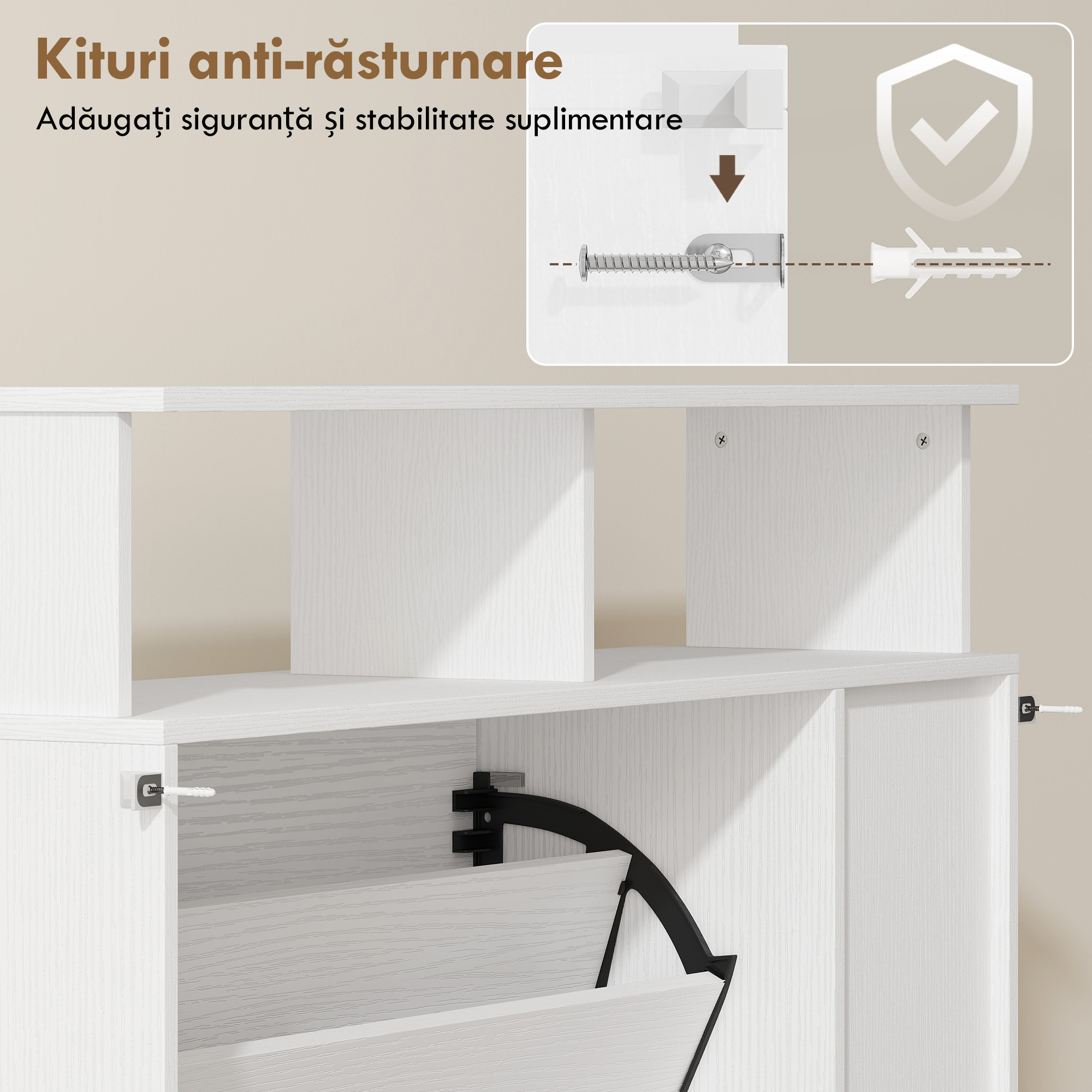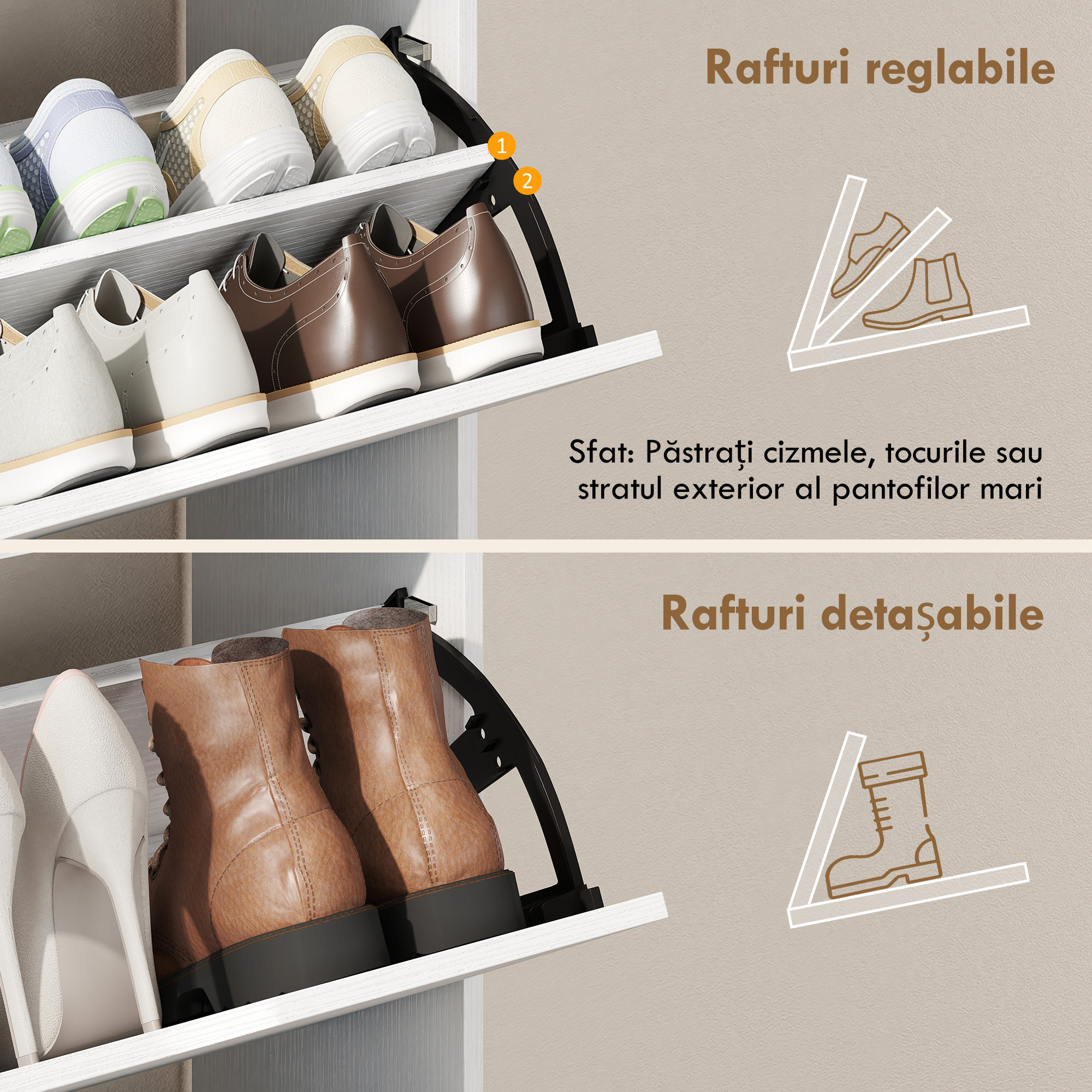 Sa te intorci acasa si sa gasesti dezordine poate fi stresant. Pantofarul [BRAND NAME], cu compartimente reglabile pentru pantofi si rafturi pentru chei, transforma holul intr-un spatiu linistit. Design slim nordic: doua sertare, rafturi reglabile, adancime de 25 cm, ideal pentru spatii inguste. Sigur datorita hardware-ului anti-rasturnare. Elegant, functional si usor de asamblat.