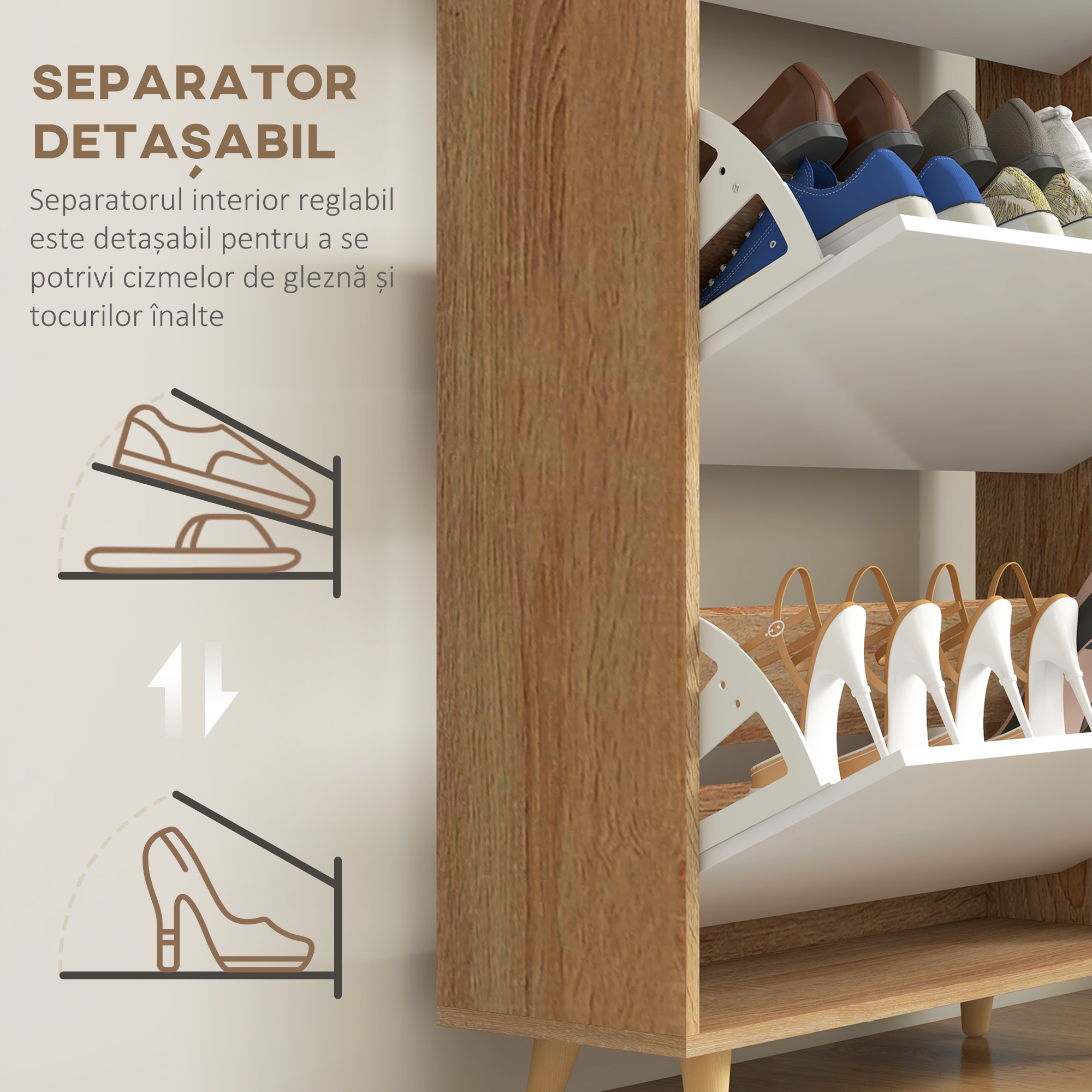 • SUPORT STABIL: Picioarele dulapului pantofilor cu picioare antiderapante ofera echilibru si stabilitate superioare
