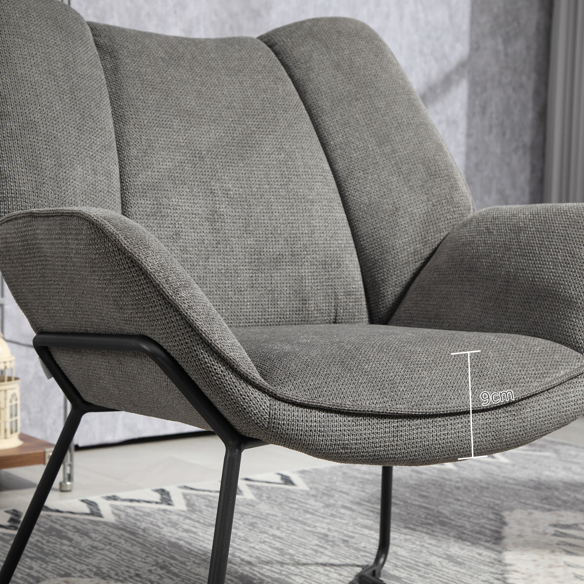 • iNVELIs CU EFECT DE IN: Fotoliul nostru de living este imbracat in tesatura moale si respirabila cu efect de in, ideala pentru sederi lungi de relaxare cu o carte sau o ceasca de ceai in mana.