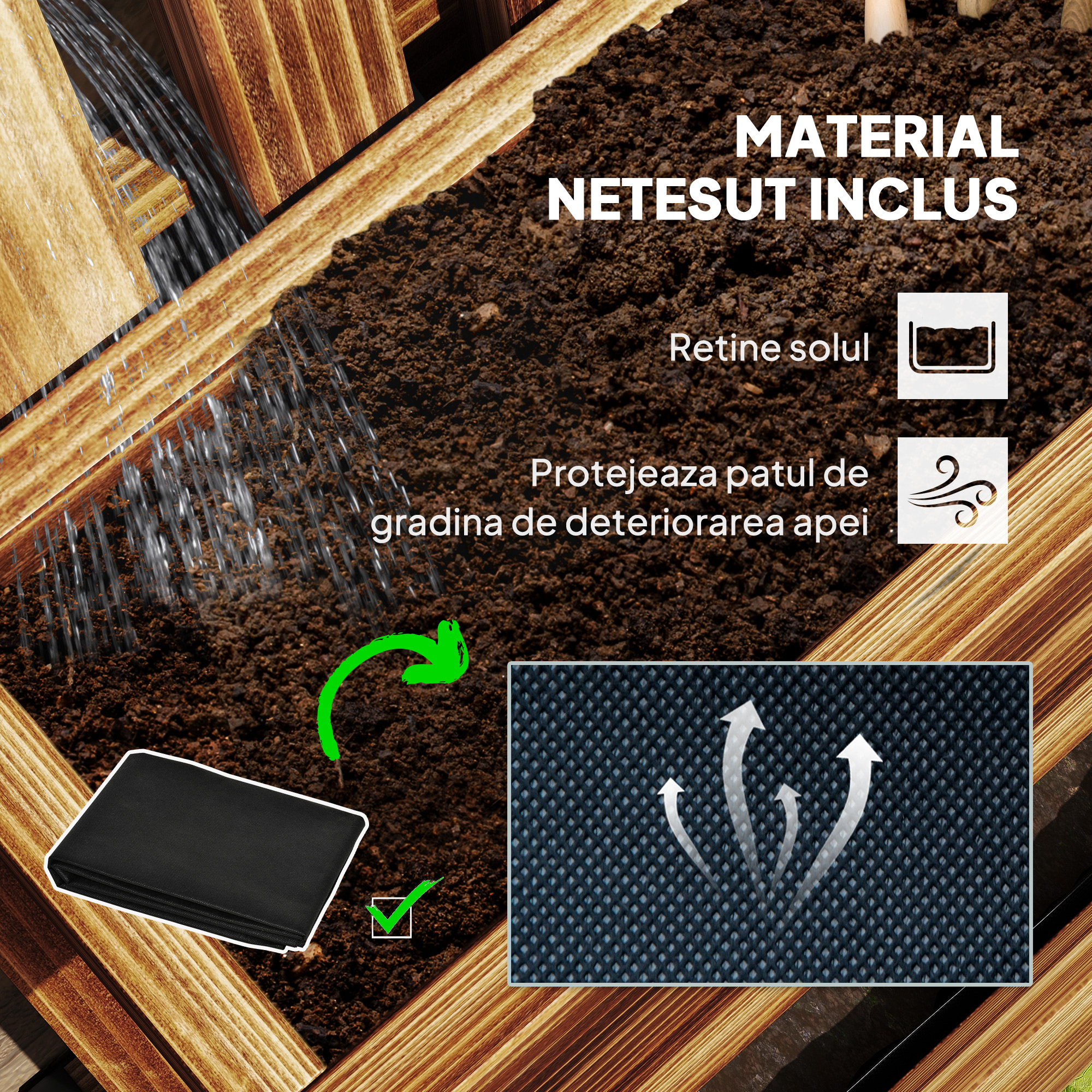 Cultiva-ti plantele preferate optimizandu-ti in acelasi timp spatiul exterior cu jardiniera verticala [BRAND NAME]. Fabricata din lemn de brad, structura este formata dintr-un suport de perete si 3 vase care pot fi indepartate sau repozitionate in functie de preferintele tale. Fiecare vas prezinta orificii practice de scurgere si o tesatura din netesut pentru a preveni scurgerea pamantului. Datorita farmecului sau rustic si natural, jardiniera va fi un accesoriu elegant pentru spatiile tale exterioare.