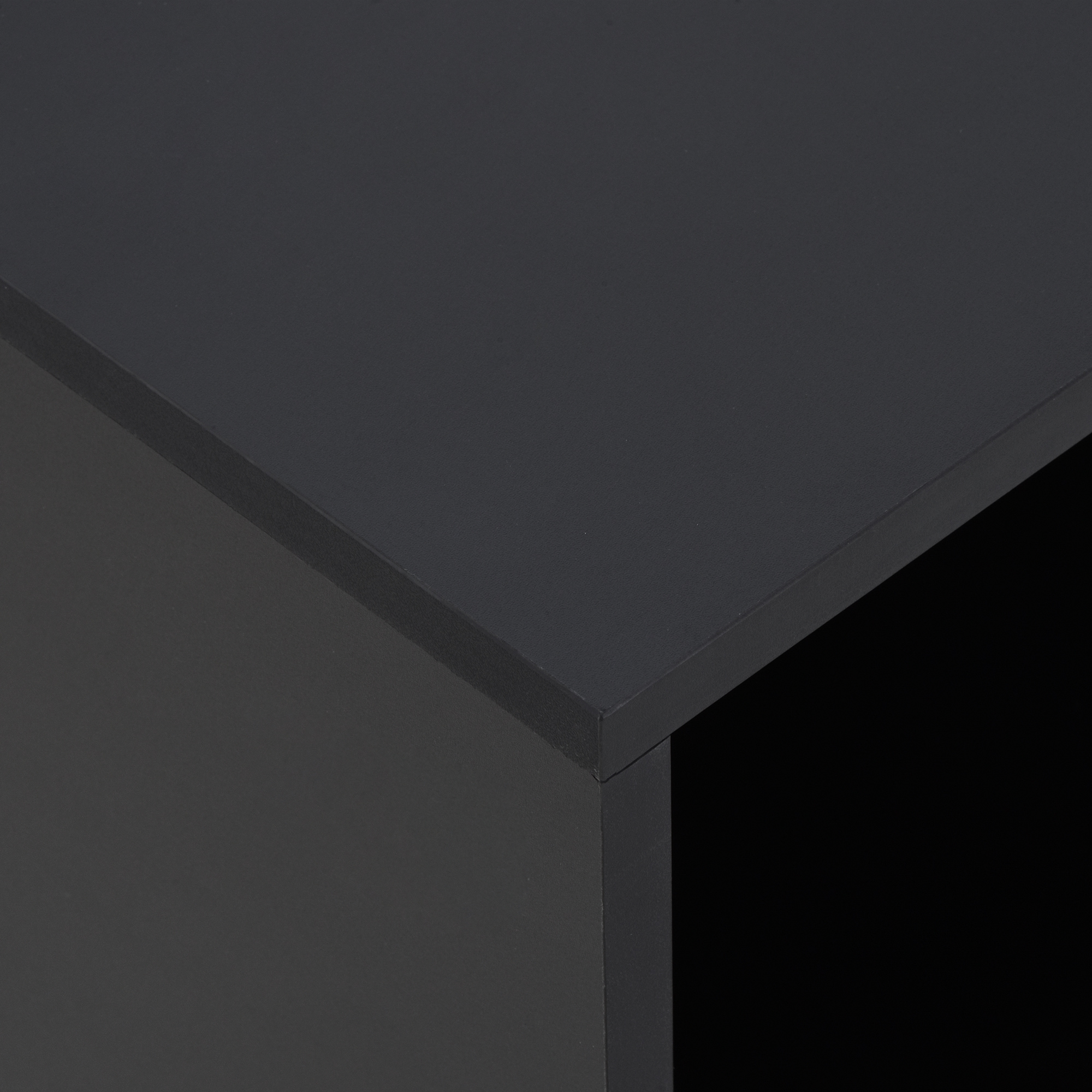 Lasati aceasta masuta laterala in forma de C de la HOMOM sa va ajute sa va pastrati casa ordonata. Fabricata din placi aglomerate solide, aceasta masuta laterala este foarte durabila si fiabila pentru utilizarea zilnica, cu doua rafturi deschise pentru depozitarea si expunerea obiectelor. Patru roti permit ca masa de colt sa fie mutata cu usurinta; doua roti pot fi blocate pentru a o mentine pe loc. Masa de colt este acoperita cu melamina, ceea ce o face usor de curatat.