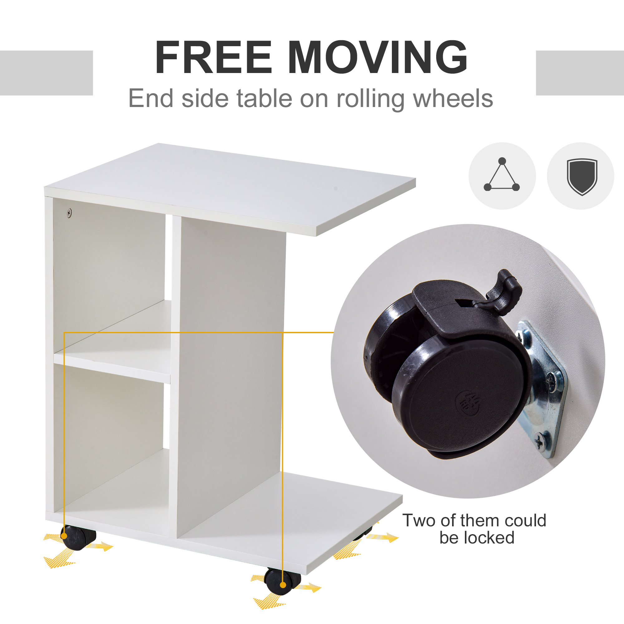 Lasati aceasta masuta laterala in forma de C de la HOMOM sa va ajute sa va pastrati casa ordonata. Fabricata din MDF solid, aceasta masuta laterala este foarte durabila si fiabila pentru utilizarea zilnica, cu doua rafturi deschise pentru depozitarea si expunerea obiectelor. Cele 4 roti permit ca masa sa fie mutata cu usurinta.