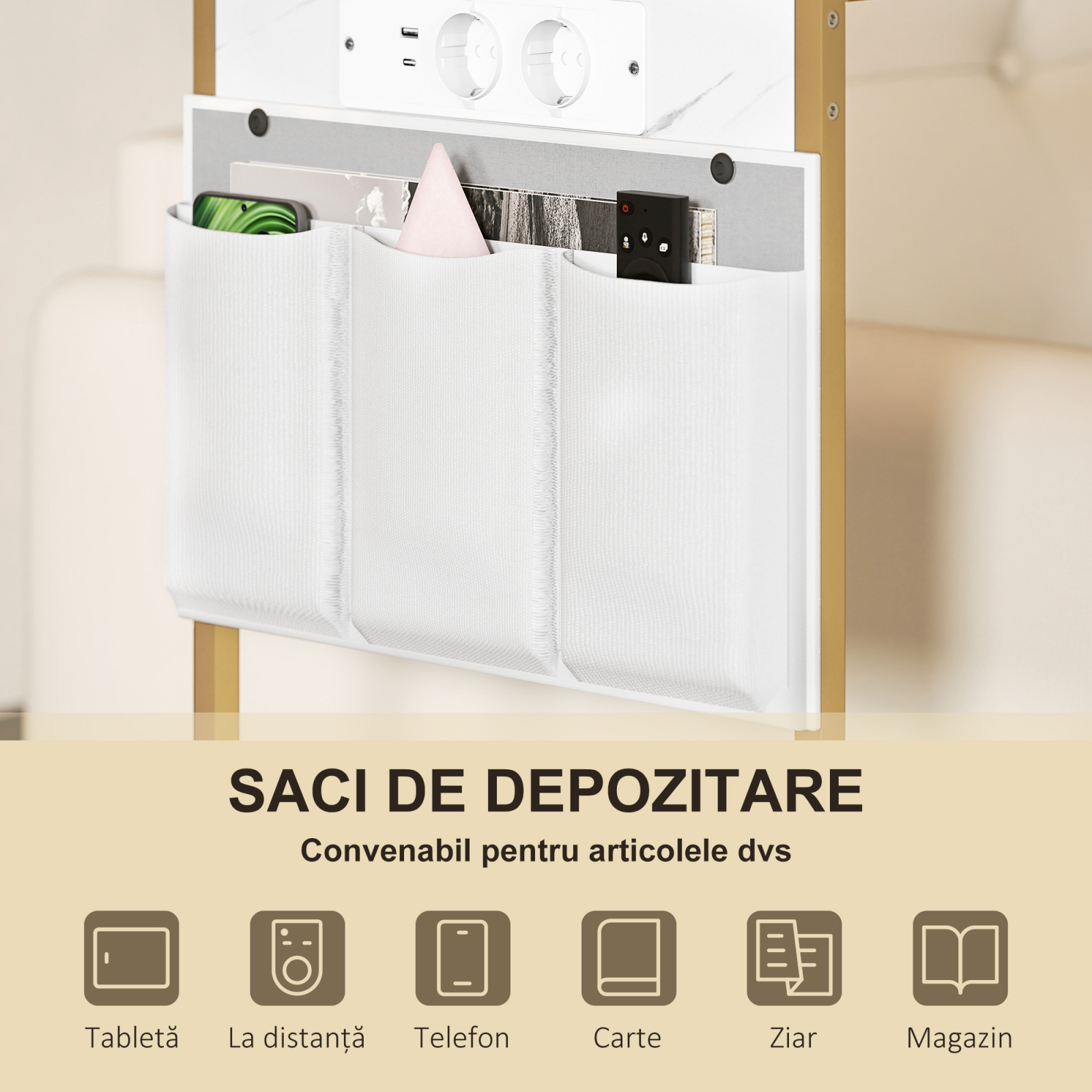 Descopera eleganta masutei [BRAND NAME] in forma de C, cu imitatie marmura si tehnologie wireless. incarca 3 dispozitive simultan prin prize USB-C/USB si organizeaza obiecte in 3 saculete. Perfectionata pentru canapele sau paturi, aduce rafinament modern oricarui interior!