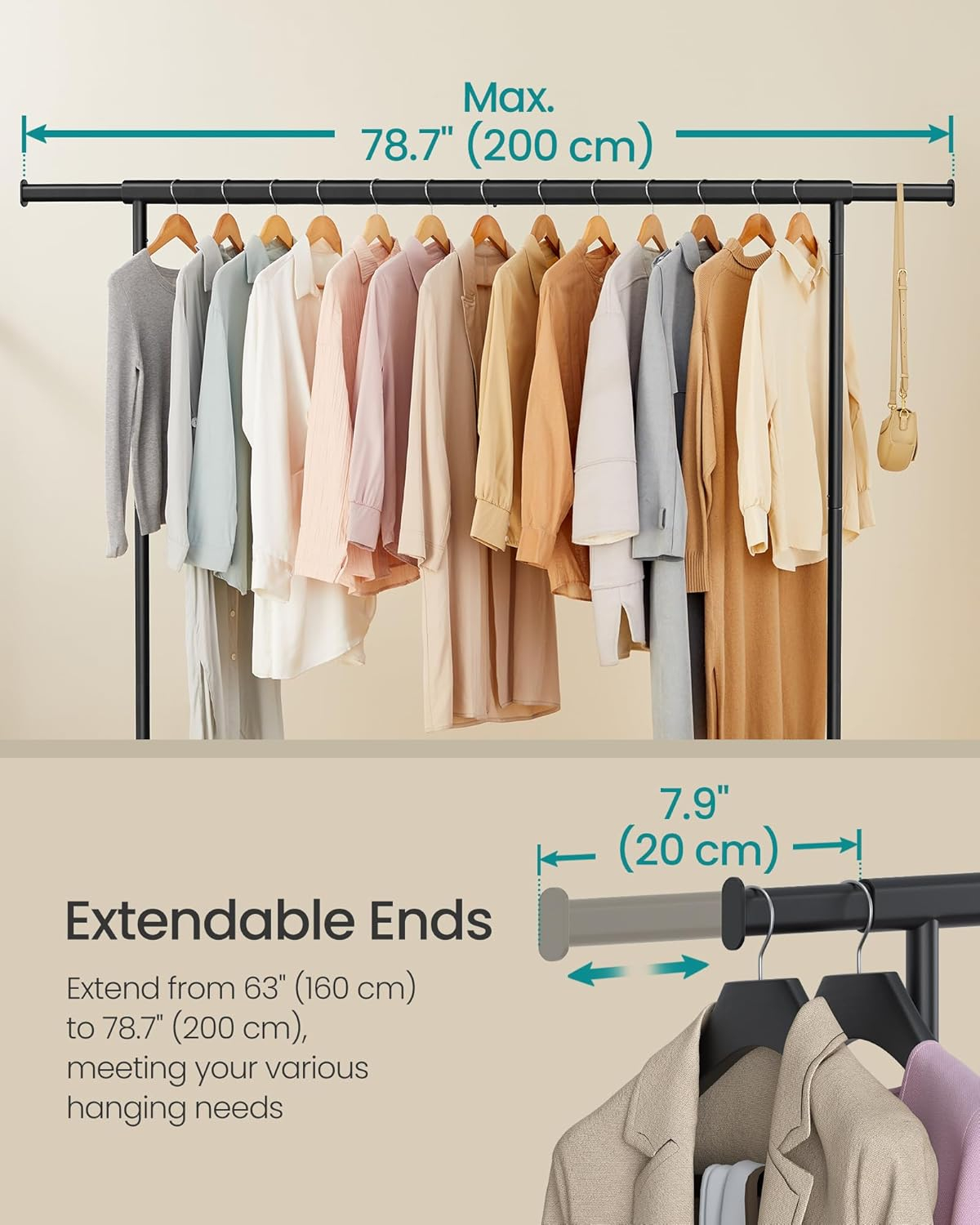 SONGMICS SONGMICS Suport haine cu roti, bara extensibila pentru umerase, structura metalica sarcina mare, 45x160-200x163 cm, negru