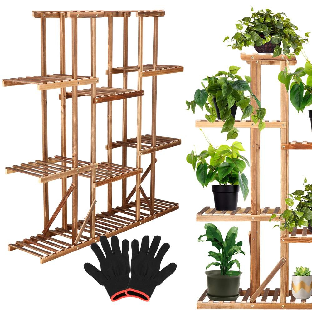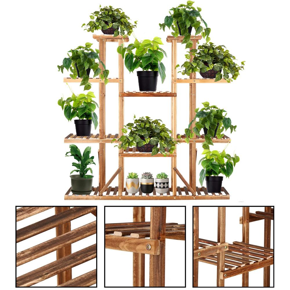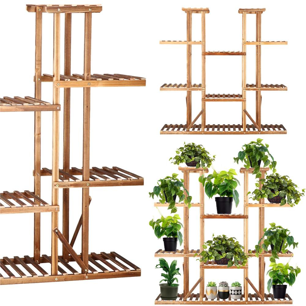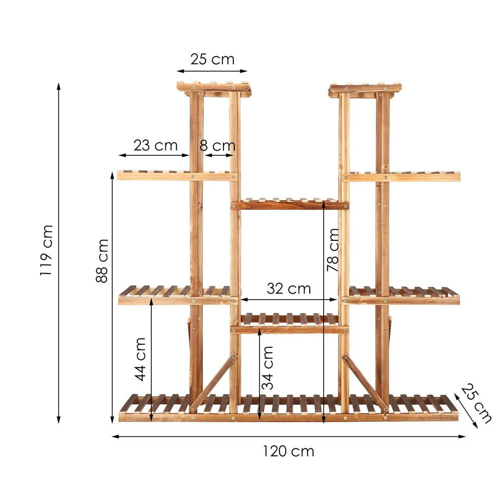 Stand flori din lemn 6 niveluri 15 locuri ghivece, efect antichizat, margini rotunjite, 119x120x25 cm, maro