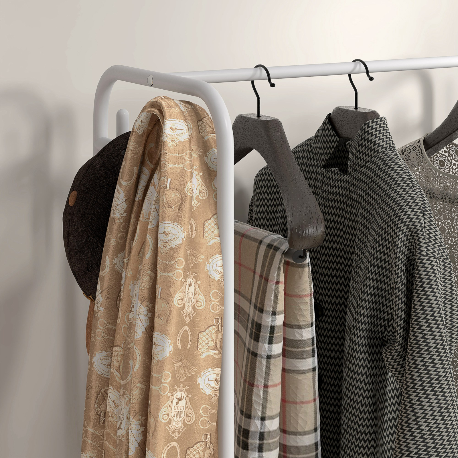 Acest suport [BRAND NAME] multifunctional include cuier cu 8 carlige, 4 cosuri si raft pentru pantofi, oferind organizare eficienta in holuri si intrari. Structura din otel si plastic este stabila si usor de intretinut. Designul vertical economiseste spatiu, fiind ideal pentru apartamente moderne.