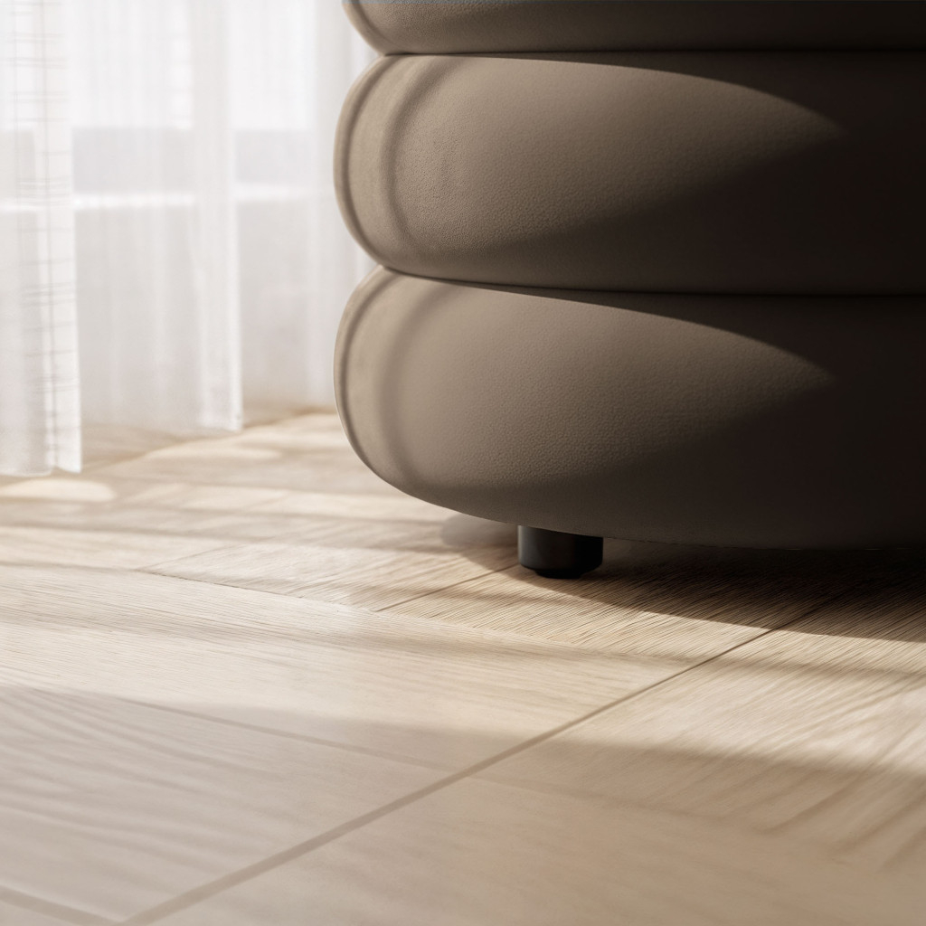 Taburetul tapitat Puffo este o piesa eleganta si practica, prevazuta cu sezut rabatabil si spatiu de depozitare interior. Tapiteria din welur moale ofera un aspect rafinat, iar dimensiunea generoasa il face ideal pentru dormitor, hol sau living, atat ca element decorativ, cat si functional.