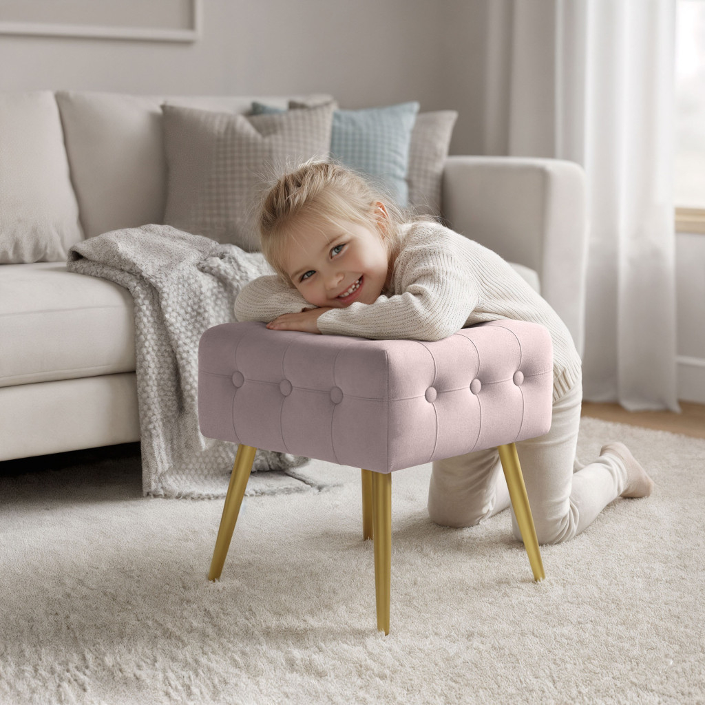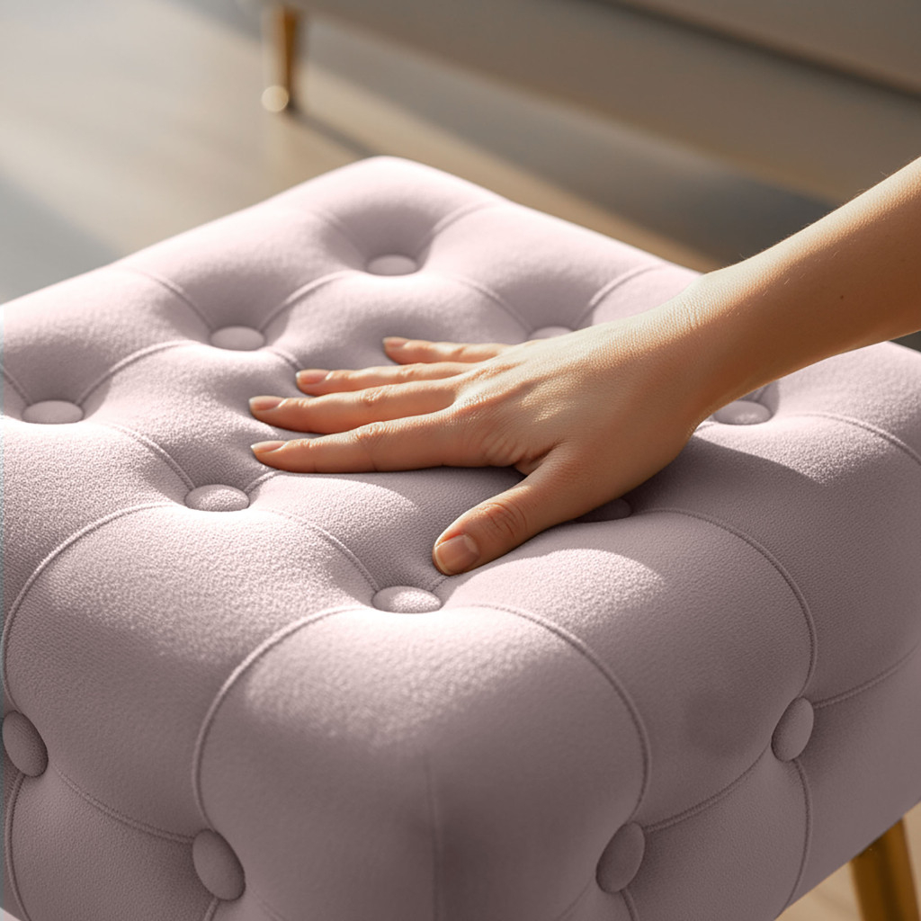 Taburetul tapitat Quadra este un element decorativ elegant, potrivit pentru interioare cu accente sofisticate. Tapiteria din welur ofera un aspect rafinat si o senzatie placuta la atingere, iar forma patrata il face usor de integrat in living, dormitor sau hol.