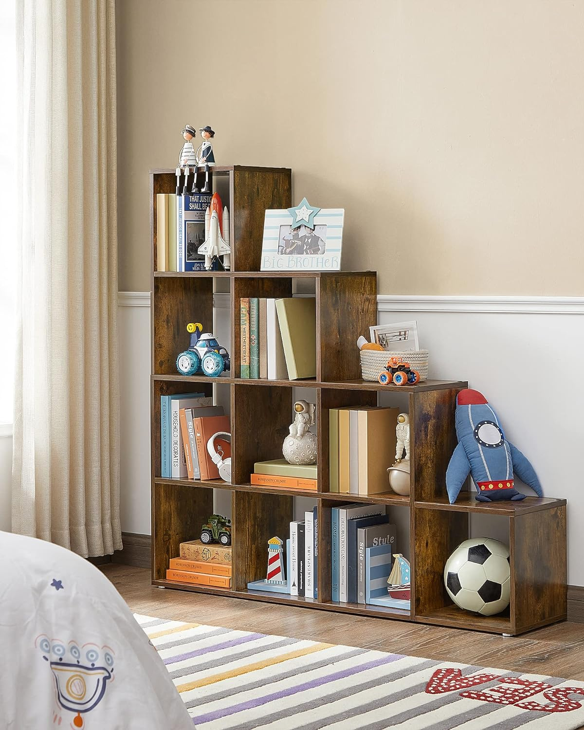 Biblioteca cu 10 compartimente, unitate de depozitare pentru decoratiuni, din lemn, 29x129x129cm, maro rustic