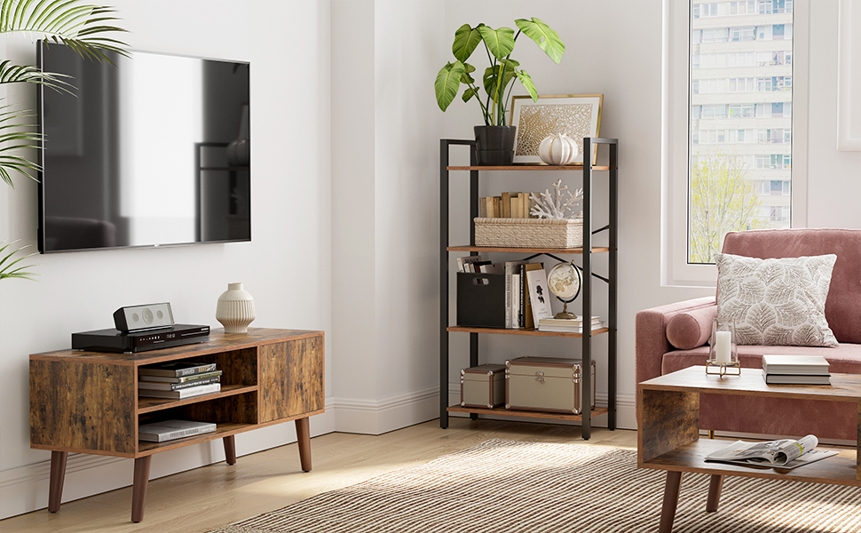 Cu 4 rafturi de 30 x 66 cm, aceasta biblioteca mare de 30 x 66 x 120 cm ofera mult spatiu de depozitare pentru a va expune cartile preferate, decoratiunile si plantele in camera de zi, dormitor sau birou. Datorita placilor aglomerate de calitate si a cadrului din otel, aceasta biblioteca cu 4 niveluri suporta pana la 40 kg, va va insoti multi ani de acum inainte.