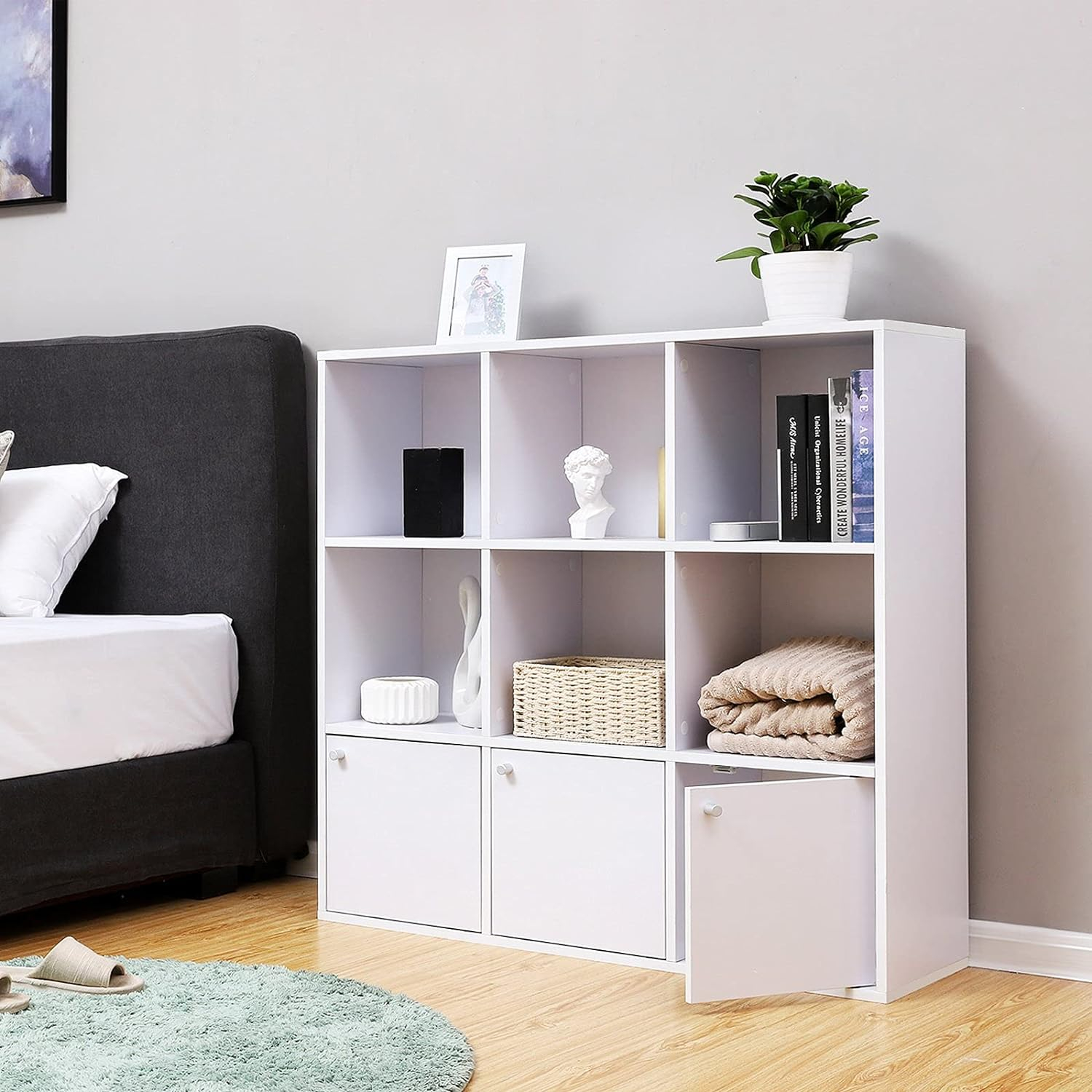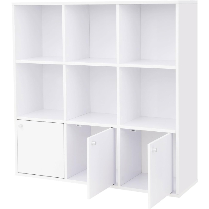 Cu 6 cuburi deschise si 3 cuburi in stil dulap, organizatorul de fisiere ofera o multime de spatiu de depozitare pentru manuale, reviste, jucarii, accente decorative, pantofi, adidasi si/sau media.