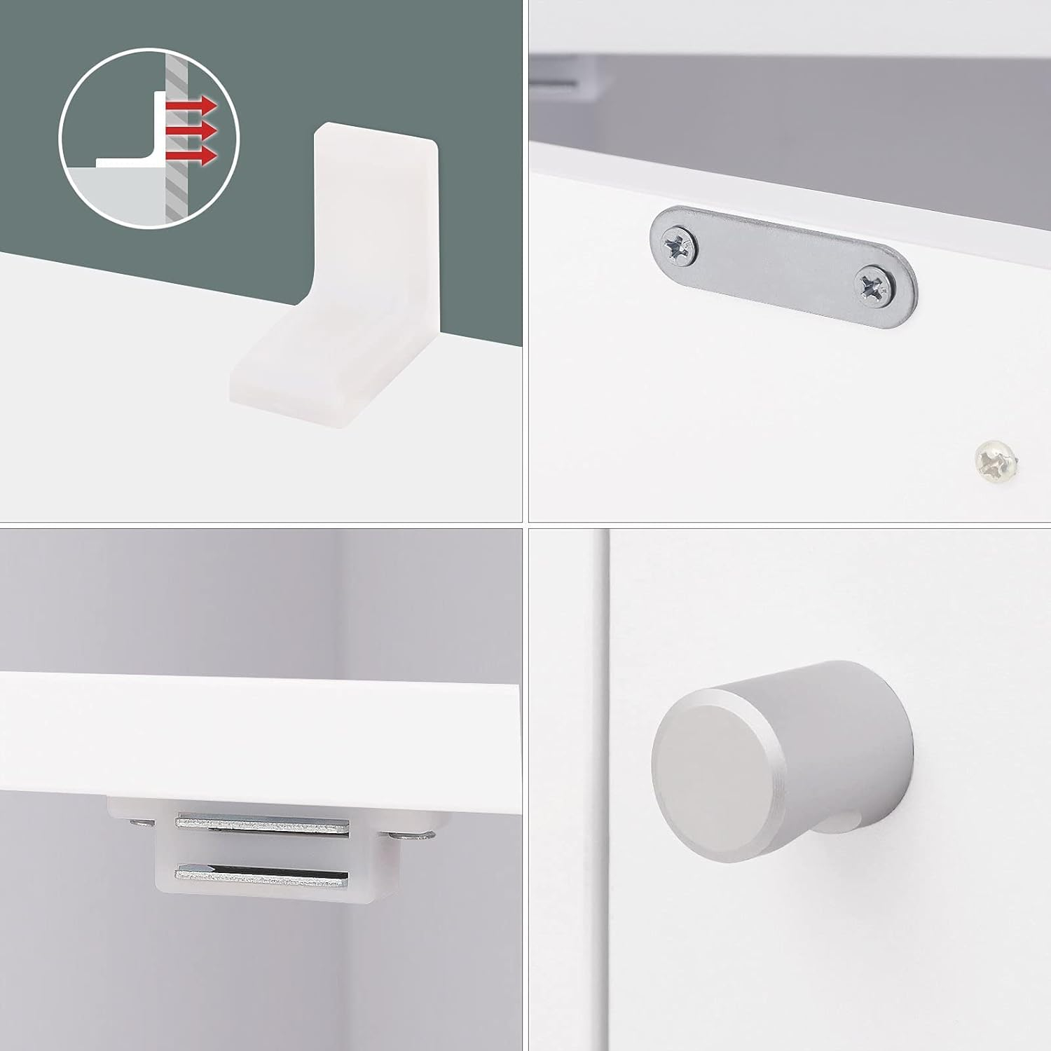 Imbunatatit cu cleme pentru a securiza panoul care aluneca in caneluri; dispozitivul anti-rasturnare echipat va ajuta la stabilizarea raftului de sine statator, astfel incat sa nu se clatinte de fiecare data cand puneti cartile.