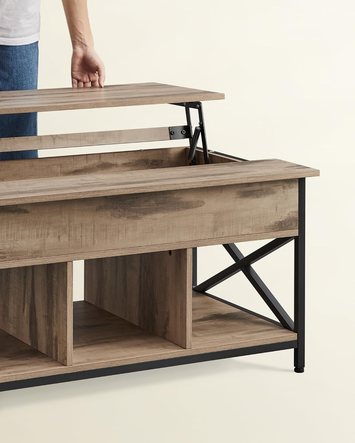 Detalii produs: Culoare: Gri stejar / NegruMaterial: Placi aglomerate PAL, otel.Dimensiuni: 60 x 100 x (48-62) cm (L x l x i).Greutate: 27,8 kg.Sarcina statica totala: 91 kg. Pachetul include: 1 x masa de cafea.1 pachet de accesorii.1 x manual de utilizare (limba engleza nu este garantata). Sfaturi VASAGLE: Din motive de siguranta, copiilor le este interzis sa se urce pe masa sau sa se joace cu ea. Ridicati partea de sus - Ridicati partea de sus a acestei mese de cafea in fata. Astfel, puteti lucra confortabil acasa, puteti naviga pe internet, puteti savura o masa delicioasa sau puteti lucra in timp ce stati pe canapea. Compartimente multiple - 3 compartimente deschise permit accesul usor la cartile dvs. si la alte obiecte mici. In compartimentul de sub tava superioara, puteti depozita obiectele pe care doriti sa le ascundeti. Tinuta stabila: Datorita balamalelor metalice de inalta calitate si a placii transversale ranforsate, blatul mesei este usor ridicat si coborat fara sa se clatine. Aspect atractiv Picioarele negre din otel intruchipeaza un stil industrial sic, blatul maro camila aduce caldura, iar barele X confera mesei un caracter unic. Infrumusetati-va camera cu aceasta masa pentru canapea. Asamblare si curatare usoara: Cu ajutorul pieselor marcate si a instructiunilor clare, puteti asambla cu usurinta aceasta masa de cafea. Suprafata este impermeabila, asa ca trebuie doar sa o curatati cu o carpa umeda daca se murdareste.