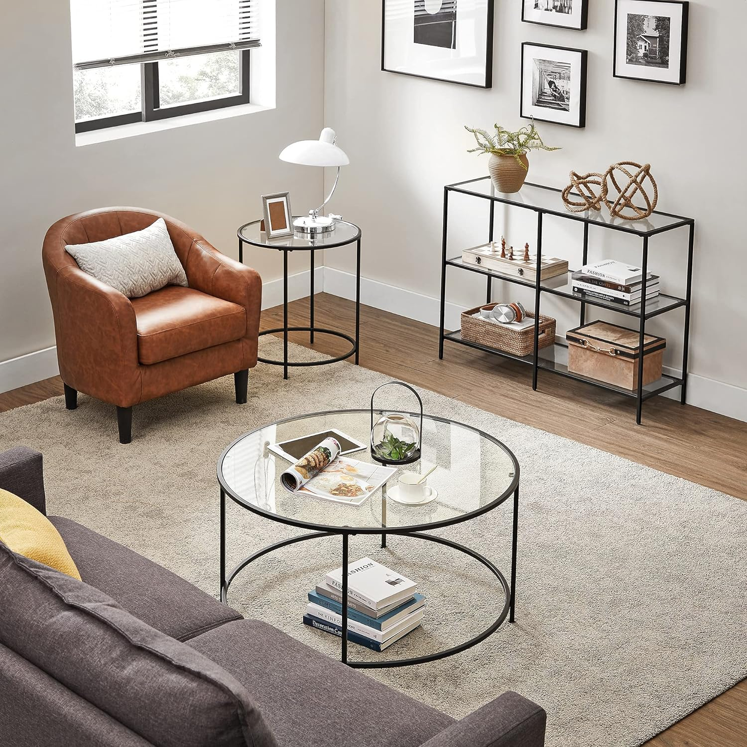Specificatii: Culoare: Negru Material: Otel, sticla calita Dimensiuni totale: 100 x 30 x 73 cm (L x l x i). Greutate: 14,9 kg. Capacitate de incarcare statica totala: 30 kg. Despre acest articol Masa noastra tip consola, cu rafturile sale din sticla calita transparenta si rama aurie metalica, este simpla, dar moderna si va evidentiaza frumos plantele, cartile si decoratiunile.Fie ca este la intrare, in spatele canapelei, in dormitor sau ascunsa sub scari, aceasta masa din sticla de 30 x 100 x 73 cm (L x L x H) aduce un strop de eleganta si se potriveste perfect datorita designului sau simplu.Aceasta masa de intrare este construita pentru a fi de lunga durata. Cu sticla calita de 5 mm grosime si otel robust, poate sustine pana la 30 kg. Iar cand vine vorba de curatare, doar o stergere rapida si ati terminat!Cu 4 picioare reglabile pentru stabilitate, un kit anti-inclinare pentru o siguranta sporita si tampoane pentru reducerea zgomotului, masa noastra este stabila, sigura si silentioasa.Instructiunile ilustrate si piesele numerotate va permit sa finalizati asamblarea acestei mese tip consola fara efort.