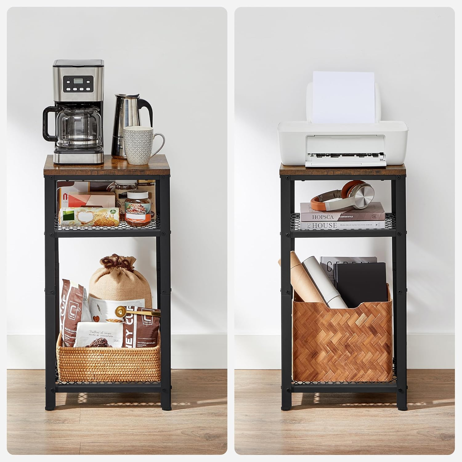 Specificatii tehnice Tip produs: Masuta laterala / masuta telefon Material: Otel si PAL Culoare: Rustic brown + negru Dimensiuni: 40 x 30 x 75 cm Capacitate maxima recomandata: 4,5 kg Numar niveluri: 3 (1 blat superior, 2 rafturi metalice tip grilaj) Montaj: Necesita asamblare Continut pachet: 1 x masuta, 1 x kit montaj, instructiuni Cod produs: LET75BX Utilizare recomandata: Hol, living, dormitor, birou Scurta descriere Aceasta masuta laterala VASAGLE imbina perfect stilul vintage cu functionalitatea moderna. Cu doua rafturi tip grilaj si un blat decorativ in aspect de lemn vechi, este ideala ca suport pentru telefon, carti sau chei in orice incapere. Structura metalica solida asigura stabilitate, iar dimensiunile compacte o fac potrivita chiar si pentru spatii restranse. Caracteristici principale Design vintage cu blat rustic si cadru metalic negru 2 rafturi metalice tip grilaj pentru depozitare Ideala pentru hol, living, dormitor sau birou Usor de montat cu instructiuni incluse Structura solida si stabila Dimensiuni compacte pentru spatii mici Perfecta ca suport telefon, masuta decor sau noptiera alternativa Adauga un accent cald si stilat in orice decor