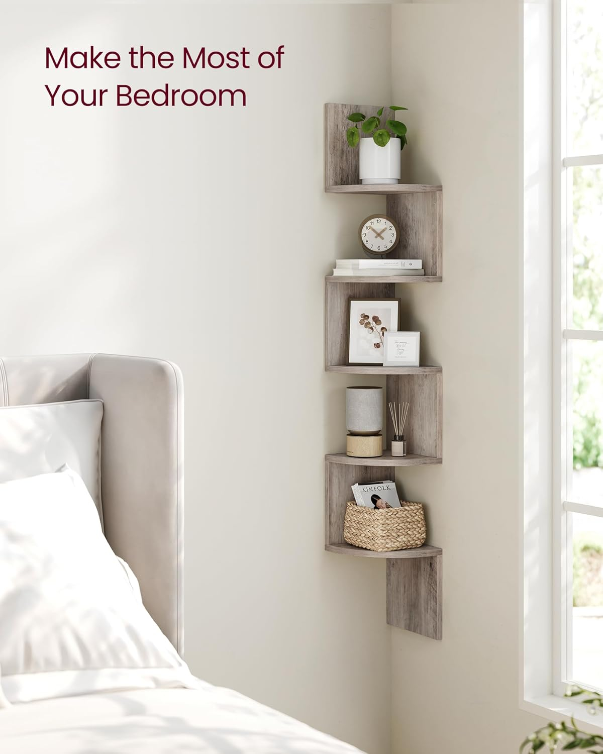 Etajera de colt cu 5 rafturi este o solutie practica pentru valorificarea spatiilor mici. Designul modern tip zig-zag ofera un aspect decorativ si functional in acelasi timp. Se potriveste in living, dormitor, birou sau bucatarie pentru expunerea cartilor, plantelor sau obiectelor decorative.