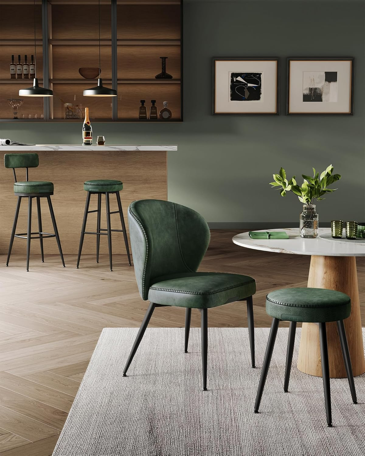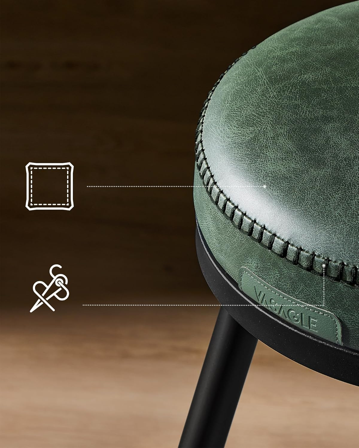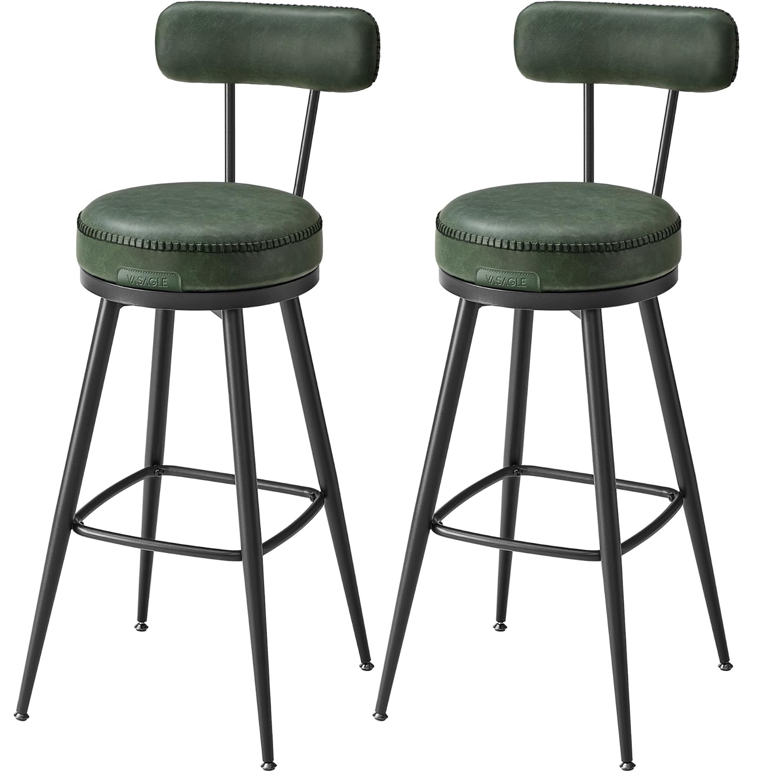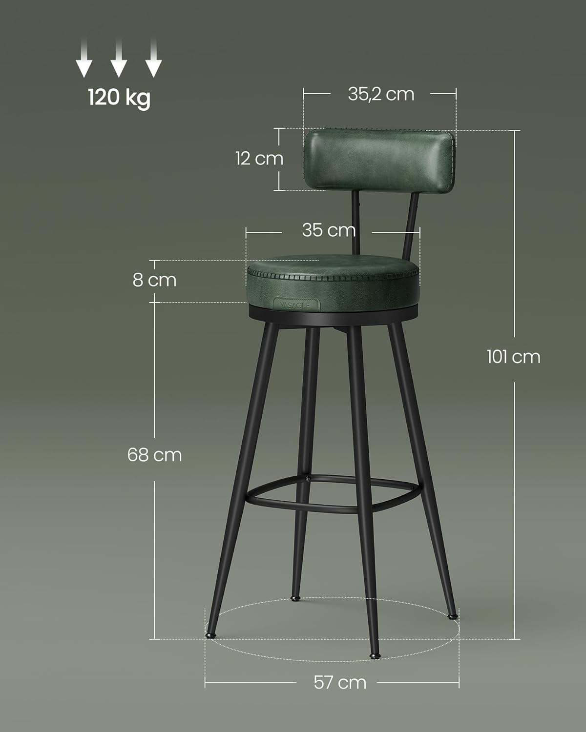 Set 2 scaune bar rotative 360 cu spatar, piele ecologica PU, spuma 8 cm, cadru otel mid-century, max 120 kg, 57x35x101 cm, verde