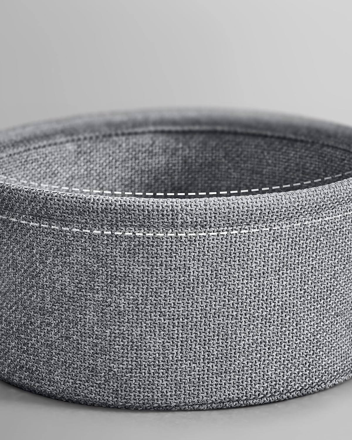 Detalii despre produs:   	 Culoare: Negru-gri argintiu  	 Material: placi aglomerate, otel, tesatura din poliester  	 Dimensiunea mesei laterale: 45 x 50 cm (Ø x H)  	 Dimensiunea cosului din tesatura: 39,6 x 18,2 cm (Ø x H)  	 Greutate totala: 4,4 kg  	 Capacitatea maxima de incarcare statica a blatului mesei: 35 kg    Despre acest articol  Rapid si usor de asamblat:  Datorita structurii simple si instructiunilor clare, aceasta masa laterala poate fi asamblata in 5-10 minute. Se potriveste spatiilor mici:  Masa de 45 x 50 cm (Dia. x H) cu cos de 39,6 x 18,2 cm (Dia. x H) se potriveste in spatii mici. Ca o noptiera in camera de zi sau ca o noptiera in dormitor, nu este voluminoasa, dar ofera o multime de spatiu de depozitare pentru articolele tale. Solid si stabil:  Blatul solid din PAL este fixat pe cadru fara clatinare. Picioarele dintr-o bucata din otel in forma de U ofera un suport stabil. Picioarele reglabile maresc stabilitatea si nu zgarie podeaua. Cos de calitate:  Cosul din tesatura de poliester cu doua straturi, fara cute, este placut ochiului si nu contine substante chimice pentru utilizare in siguranta. Cu un aspect asemanator inului, adauga o nota unica acestei mese mici. Moderna si simpla:  Aceasta masuta de cafea rotunda alba simpla cu cos bej va adauga un plus de stil sufrageriei sau dormitorului dvs. si este usor de asortat cu o varietate de stiluri de mobilier.
