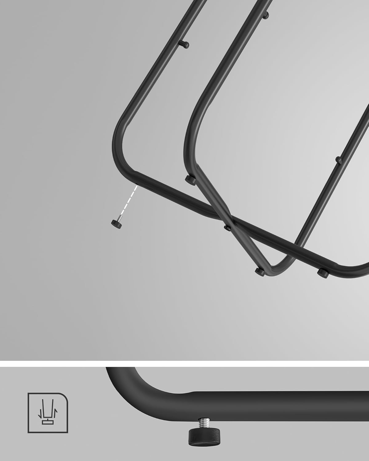 Detalii produs: Culoare:  negru-gri Material: placi aglomerate, otel, tesatura din poliester Dimensiunea masutei: 45 x 50 cm (Ø x H) Dimensiunea cosului din tesatura: 39,6 x 18,2 cm (Ø x H) Capacitatea maxima de incarcare statica a blatului mesei: 35 kg Usor si rapid de asamblat: Datorita structurii simple si instructiunilor clare, masuta de cafea poate fi montata in 5-10 minute. Potrivit pentru spatii mici: Masuta de 45 x 50 cm (diametru x inaltime) are un cos de 39,6 x 18,2 cm (diametru x inaltime) si este potrivita pentru camere mici. Ca masuta laterala in camera de zi sau noptiera in dormitor, ocupa putin spatiu si ofera totusi mult spatiu de depozitare. Solid si stabil: Placile aglomerate solide pot fi fixate ferm si fara oscilatii pe cadru. Picioarele U din otel realizate dintr-o singura bucata ofera un suport puternic. Picioarele reglabile sporesc stabilitatea si va protejeaza podeaua de zgarieturi. Cos de inalta calitate: Cosul este fabricat din tesatura de poliester neteda, cu strat dublu si arata frumos. In plus, nu are acoperire chimica si asigura o utilizare sigura. Datorita aspectului de in, confera acestei masute o nota unica. Moderna si simpla: Aceasta masa laterala rotunda simpla ofera sufrageriei sau dormitorului dvs. o nota de stil datorita combinatiei de negru de abanos si gri ardezie si se potriveste diferitelor stiluri de interior.