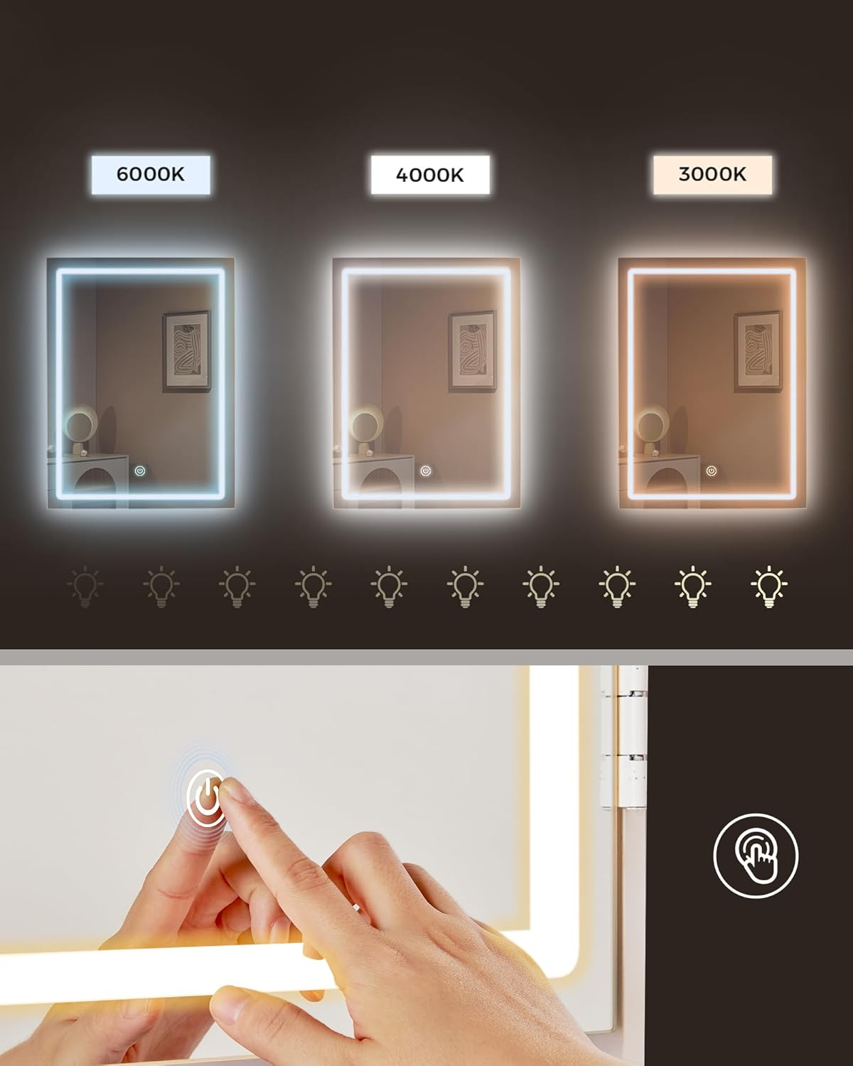 Iluminare LED reglabila: Apasati comutatorul timp de cateva secunde pentru a regla intensitatea, apasati scurt pentru a schimba culoarea luminii. Puteti regla iluminarea LED in functie de nevoile dvs. pentru a obtine un machiaj perfect.