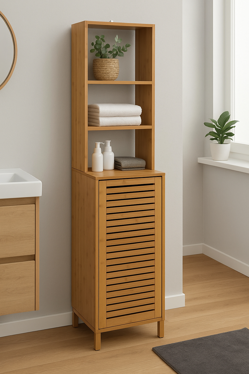 Specificatii tehnice Marca: 5Five Model: Sicela Culoare: Natur Dimensiuni produs: 38 x 33 x 168 cm Material: Bambus (PART BDE1) Scurta descriere Etajera Sicela de la 5Five este o piesa functionala din bambus natural, ideala pentru baie, hol sau living. Cele 5 rafturi ofera spatiu generos pentru organizare, iar designul vertical economiseste spatiu, pastrand un aspect aerisit si elegant. Caracteristici principale 5 rafturi deschise pentru depozitare Constructie durabila din bambus Design vertical si compact Finisaj maro cald si natural Potrivita pentru baie, hol, dressing sau living