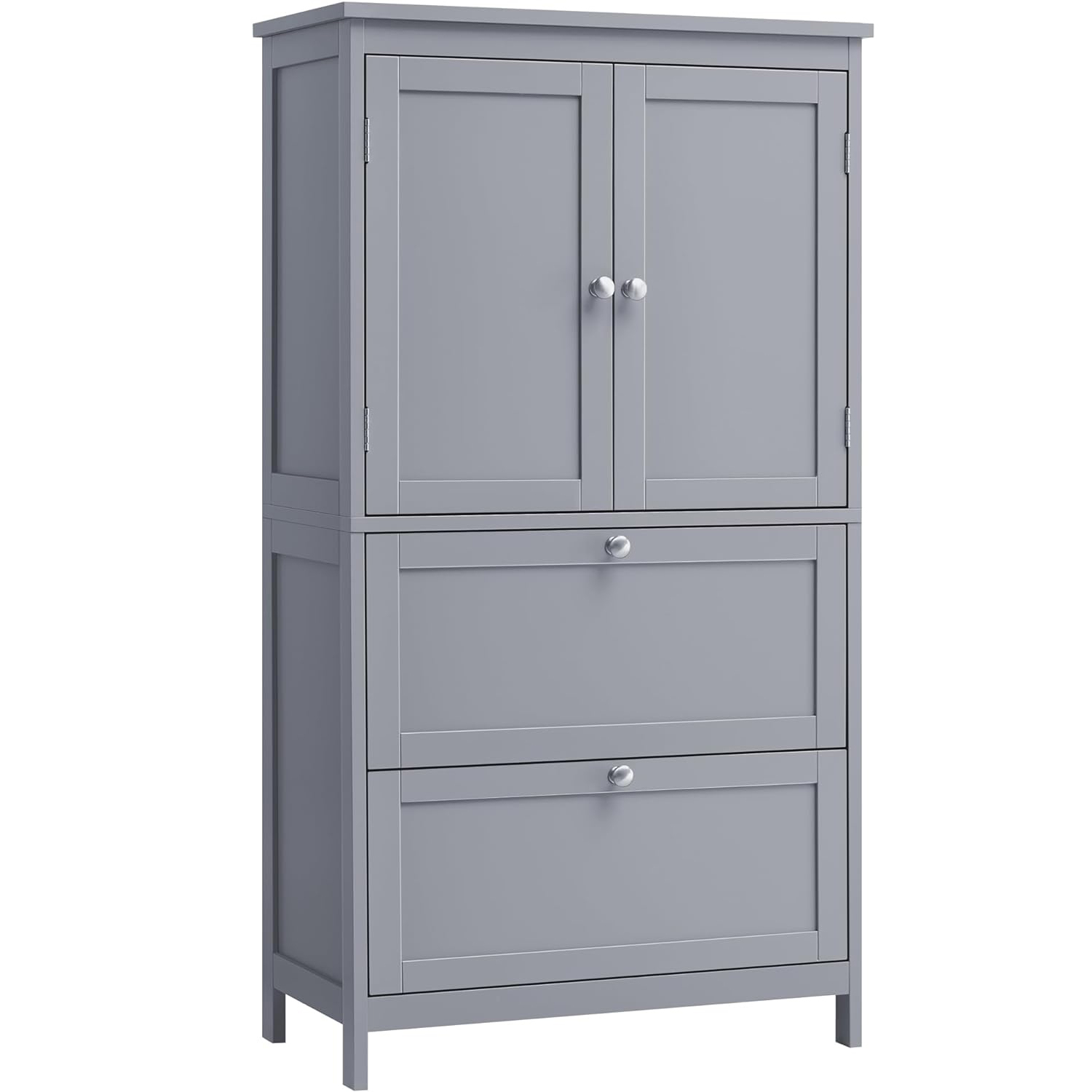 Specificatii: Culoare: Gri Material: MDF (panou de fibre de densitate medie) Dimensiunea produsului: 30 x 60 x 110 cm Greutatea produsului: 18,5 kg Max. Capacitate de incarcare statica a blatului: 136 kg Despre acest articol O multime de spatiu de depozitare: Acest dulap de baie are un dulap superior si 2 sertare incapatoare pentru a oferi spatiu amplu pentru uscatorul de par, prosoapele, cosmeticele, articolele de dus si multe altele.Rafturi reglabile: Raftul din dulapul superior este reglabil in 5 pozitii, permitandu-va sa gazduiti articole de diferite inaltimi.Combina calitatea si stilul: Realizat din MDF de inalta calitate si echipat cu un dispozitiv anti-inclinare, aceasta unitate de depozitare pentru baie este durabila si stabila. Panourile sale decorative elegante imbunatatesc aspectul baii dvs.Siguranta garantata: Kitul anti-inclinare furnizat va ajuta sa fixati dulapul de baie pe perete, creand un mediu de viata sigur.Asamblare usoara: Asamblarea acestui dulap independent este o joaca de copii, cu ajutorul pieselor etichetate si a instructiunilor simple.