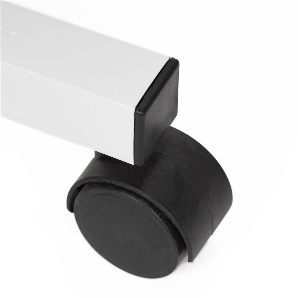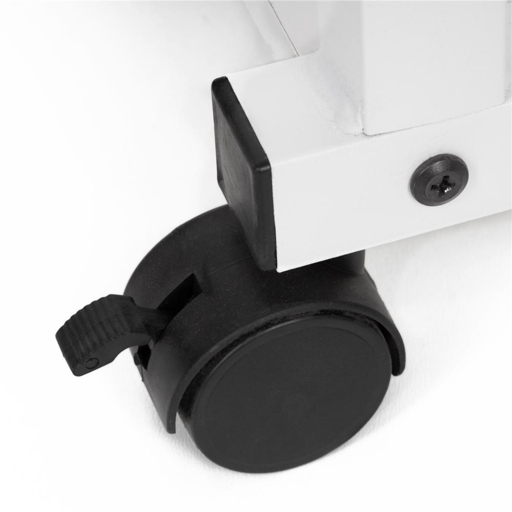 Birou compact cu inaltime reglabila manual, potrivit pentru birou sau spatiu de lucru acasa. Structura metalica stabila, combinata cu blat din lemn si rafturi laterale, ofera functionalitate si mobilitate datorita rotilor pivotante.