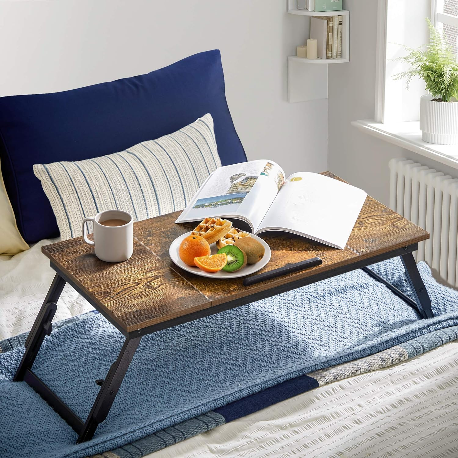 Pentru a manca, lucra sau distra: Aceasta masauta pentru laptop, cu o suprafata de 71 x 35 cm, este ideala pentru vizionarea de filme, navigarea pe internet, servirea unui mic dejun romantic in pat sau chiar functioneaza ca un birou portabil pentru ca copiii sa se joace pe el. Atunci cand este pliat, il puteti transporta si pentru picnicuri sau camping, deoarece ocupa putin spatiu de depozitare.