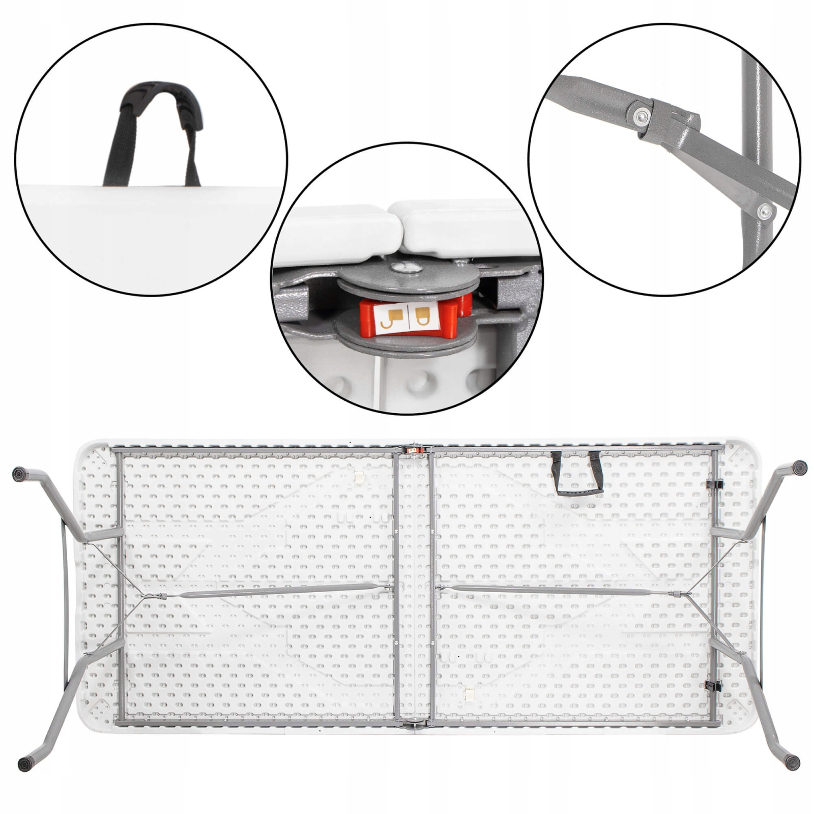 Masa pliabila este elementul perfect pentru orice eveniment, banchet sau excursie turistica de familie. Datorita posibilitatii de a o plia sub forma de valiza, va puteti deplasa convenabil cu ea literalmente oriunde. In plus, are un maner care usureaza transportul.