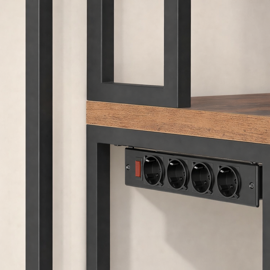 Banda de prize integrata, cu 4 iesiri si protectie la suprasarcina, permite alimentarea usoara a electrocasnicelor. Structura din otel si PAL asigura rezistenta in utilizare zilnica, iar picioarele reglabile mentin stabilitatea pe suprafete denivelate.