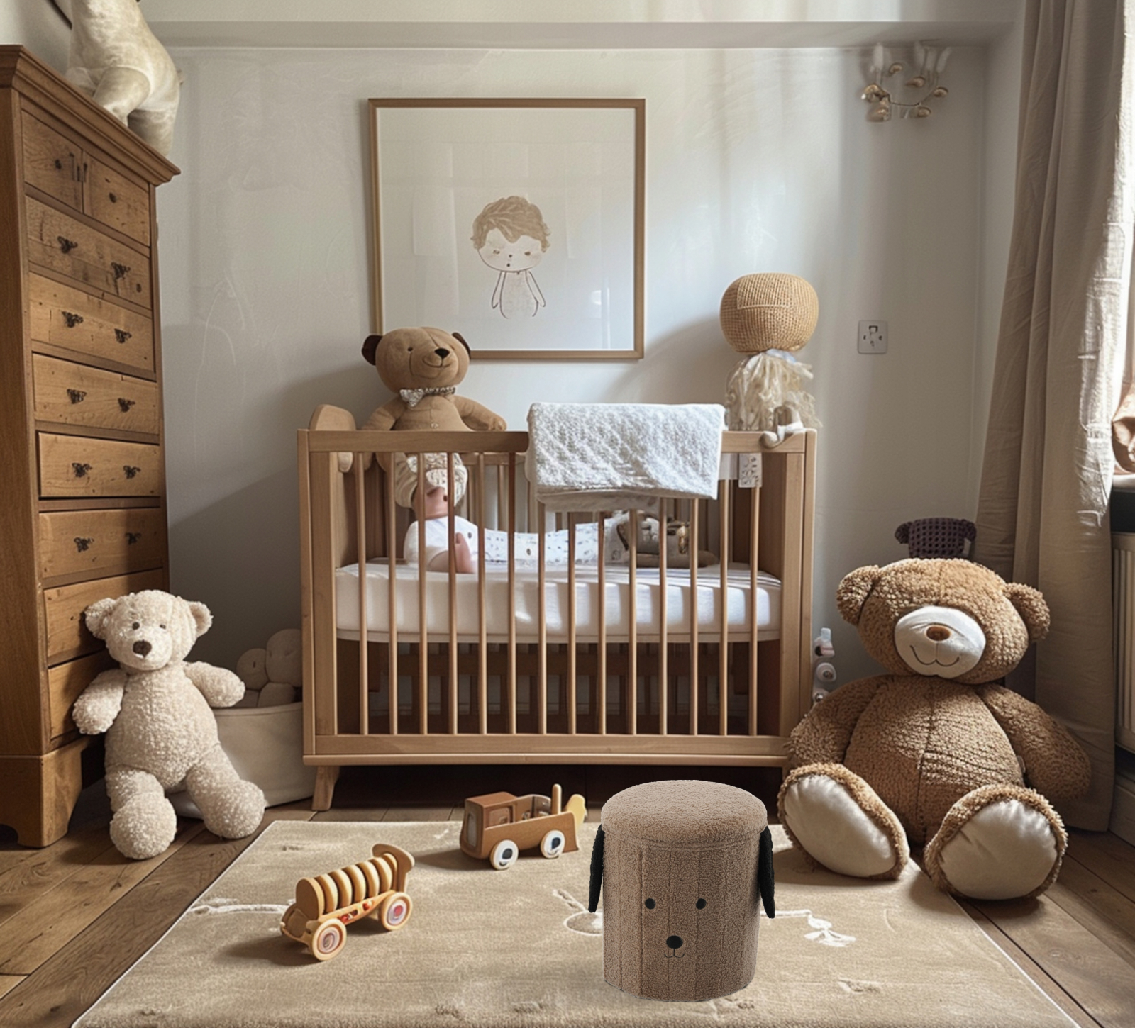 Culoare: Maro Dimensiune: 28 cm x 28 cm x 34 cm Taburetul pliabil cu depozitare, care masoara 28 x 28 x 34 cm, este o solutie practica, dar eleganta pentru orice interior. Va fi perfecta in camera de zi, dormitor, hol si, mai ales, in camera copiilor, unde estetica merge mana in mana cu functionalitatea. Fabricat din materiale durabile, rezistent la deteriorari si usor de pastrat curat, asigura o utilizare sigura si confortabila pentru toata lumea din casa.Acest puf este recomandat in special pentru o camera pentru copii, unde serveste atat ca spatiu practic de depozitare, cat si ca scaun, facandu-l un plus excelent pentru joaca de zi cu zi. Copiii isi pot depozita acolo jucariile preferate, rechizitele scolare sau alte comori, invatand cum sa organizeze spatiul. Cu o sarcina maxima de pana la 80 kg, poate fi folosit si ca scaun confortabil la birou sau in timp ce se joaca pe podea.Comoditate si confort – constructia solida asigura stabilitate, iar tesatura placuta la atingere mareste confortul de utilizare.Sigur pentru copii – un produs realizat din materiale durabile si sigure, care sunt rezistente la uzura de zi cu zi.