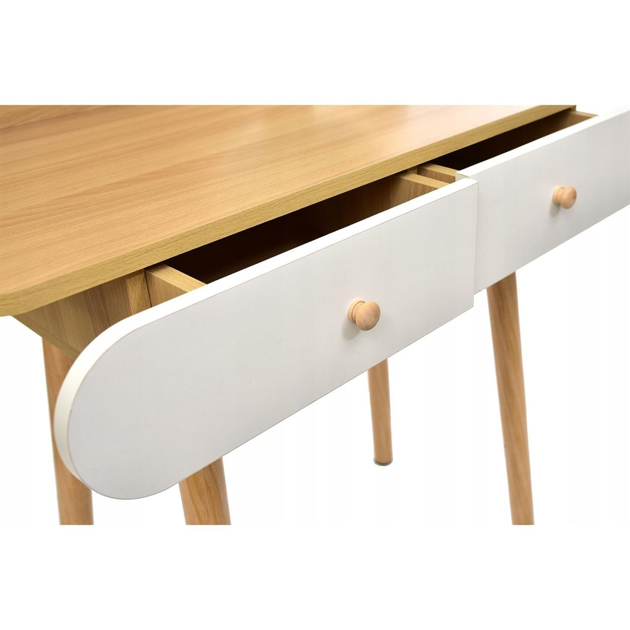 Aceasta piesa de mobilier este perfecta pentru dormitor, fiind un loc practic pentru machiaj, coafura, ingrijirea zilnica a frumusetii, precum si pentru a scrie o scrisoare sau pentru a depozita o varietate de obiecte mici. UTILIZARE OPTIMA SI PRACTICA - sertare, ideale pentru cosmetice, bijuterii, chitante, instrumente de scris si orice obiecte mici care vor avea in sfarsit locul lor,- rafturi convenabile pentru a tine obiectele folosite zilnic, cum ar fi crema de maini, un recipient de perii pentru pudra, parfum si accesorii pentru par,- o suprafata de lucru care va permite, de asemenea, sa folositi masuta de toaleta ca birou,- o oglinda, astfel incat sa va puteti vedea coafura si machiajul in detaliu din toate partile,- o zona de depozitare convenabila pentru taburete SPECIFICATIILE PRODUSULUI Material Tabla MDFCuloare alb fagInaltimea mobilierului 122 cmLatimea mobilierului 80 cmAdancimea mobilierului 40 cmDiametrul oglinzii 40 cmAsamblare Pentru autoasamblare  *Articolele prezentate in imagine (bijuterii, cosmetice) nu fac parte din masa de toaleta.