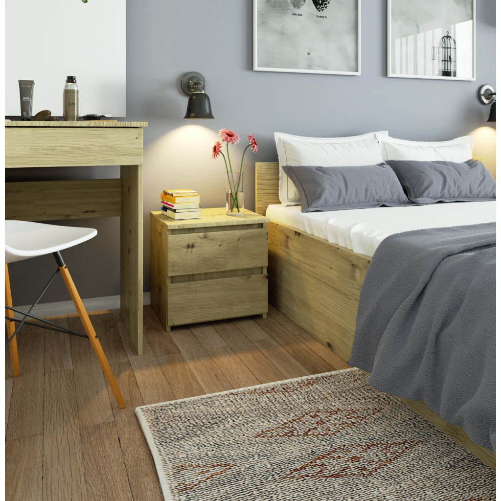 Noptiera cu 2 sertare, din PAL laminat, 40x35x40 cm, stejar artisan