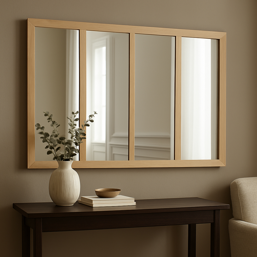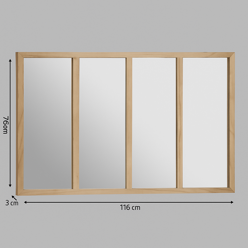 Specificatii tehnice Marca: Atmosphera Model: Nae Material cadru: Lemn de paulownia Material oglinda: Sticla Material spate: MDF E1 Material prindere: Fier Culoare: Natur Dimensiuni produs: L. 116 x P. 3 x H. 76 cm Dimensiuni suprafata oglinda: 72 x 112 cm Greutate produs: 7,5 kg Orientare montaj: Orizontala sau verticala Scurta descriere Oglinda „Nae” din lemn de paulownia este o alegere naturala si eleganta pentru orice camera. Rezistenta la umiditate si cu un aspect exotic, se potriveste perfect in bai, dormitoare sau holuri. Designul sau amplu mareste vizual spatiul si adauga luminozitate ambientului. Caracteristici principale Cadru din lemn exotic de paulownia Rezistenta buna la umiditate Montaj vertical sau orizontal Suprafata mare de reflexie Design natural, ideal pentru spatii mici Potrivita pentru baie, dormitor sau living