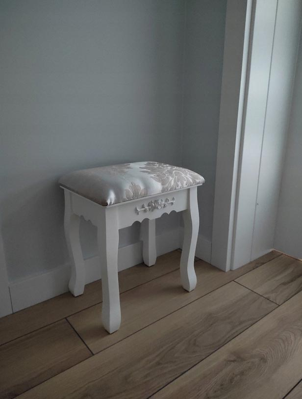 Caracteristicile produsului: Dimensiuni: 38x28x45 cm Culori deschise Stil rustic Tapiterie moale Usor de asamblat Materiale: Picioare - din lemn masiv Tapiterie - poliester Un taburet versatil care se potrivește practic oricărei măsuțe de toaletă în stil rustic! Se caracterizează printr-un scaun incredibil de confortabil . Fabricat din lemn masiv, tapițat cu tapițerie moale. Echipat cu patru picioare stabile din lemn. Se va dovedi util nu numai ca scaun, ci și ca o decorațiune interioară excelentă! Utilizarea culorilor deschise îl face foarte elegant. Poate fi folosit ca taburet pentru picioare!