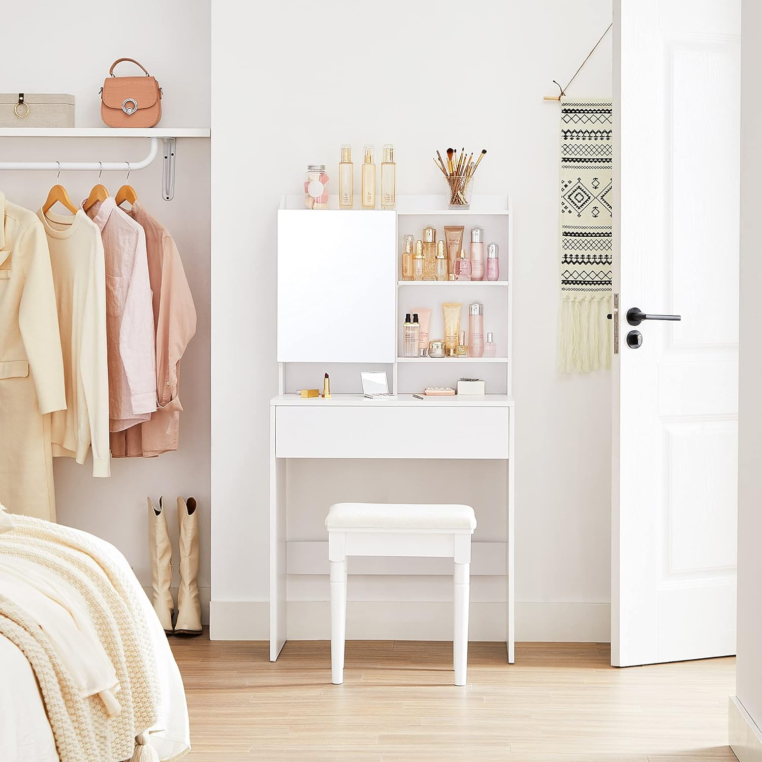 VASAGLE VASAGLE Masuta de toaleta cu oglinda, rafturi reglabile si sertar pentru cosmetice, 70x40x136cm, alb
