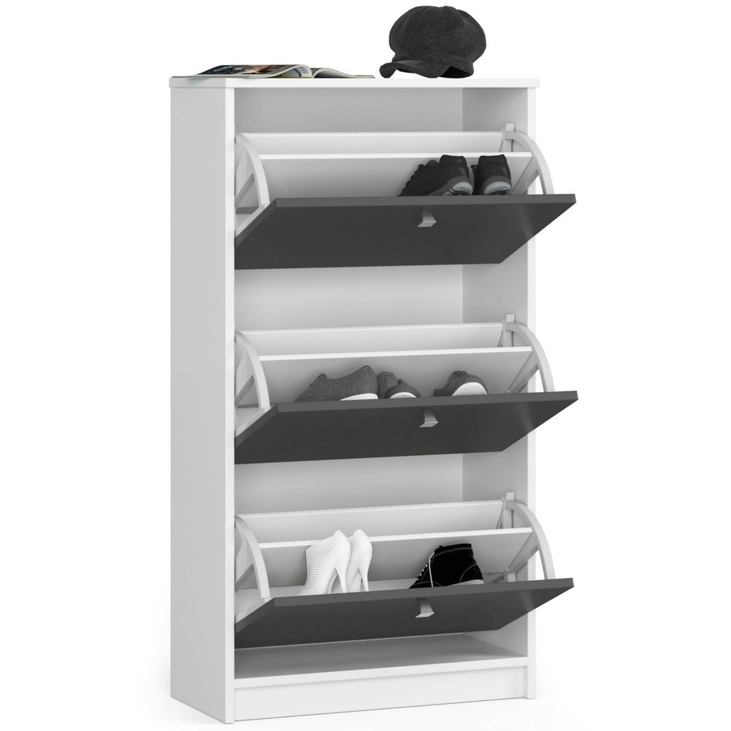 Dulap pantofi cu 3 usi rabatabile, PAL laminat 16 mm, 60x29x113 cm, alb si gri