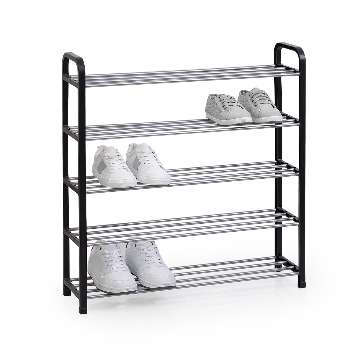 Aceasta etajera compacta pentru pantofi, cu structura metalica si elemente din plastic rezistent, ofera spatiu pentru pana la 16 perechi. Cu un design simplu si eficient, este ideala pentru holuri, dressinguri sau spatii de depozitare reduse. Se monteaza usor si se livreaza in cutie tip prezentoir.