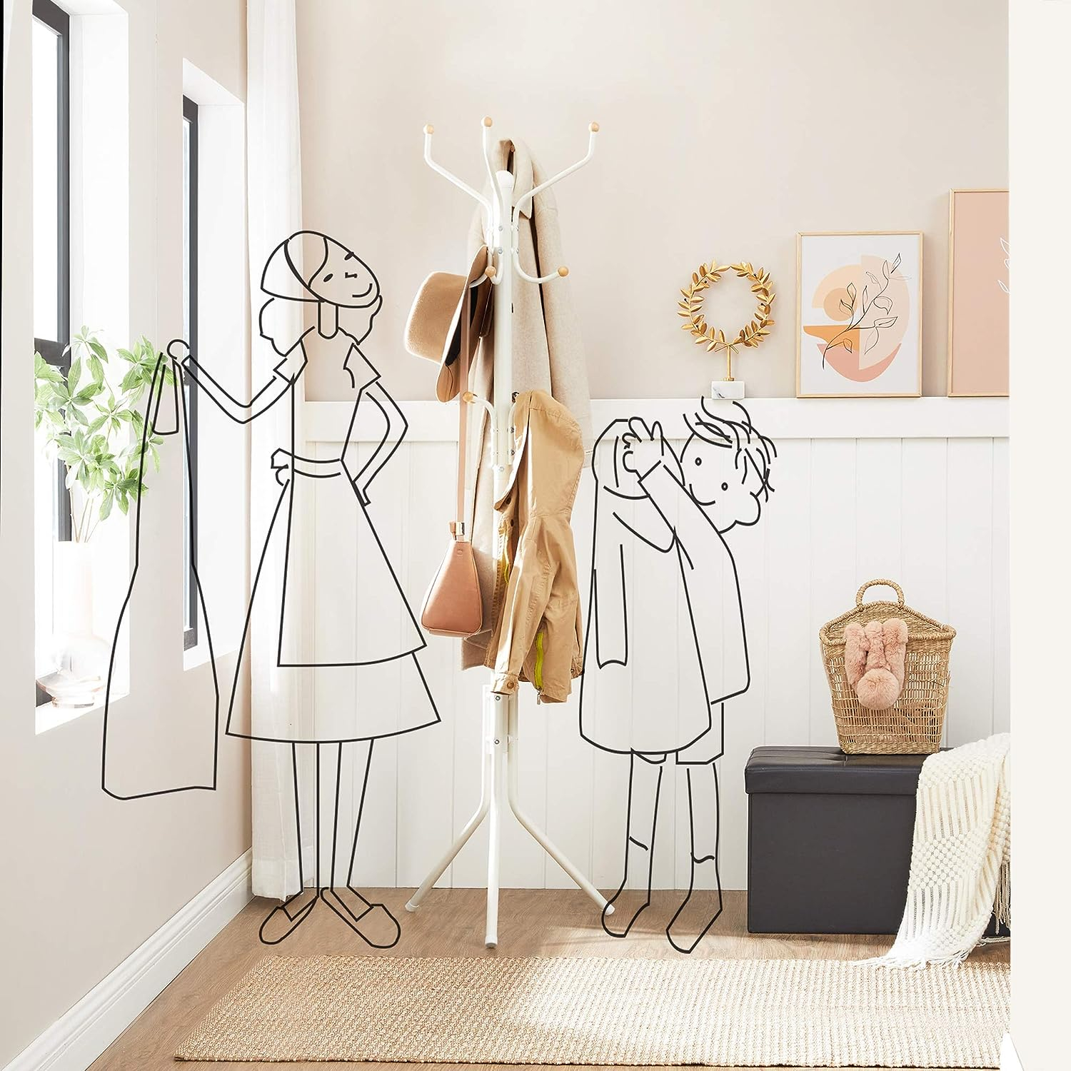 SONGMICS Cuier pentru haine cu 12 carlige pe 3 nivele, metalic, inaltime 182 cm, alb crem