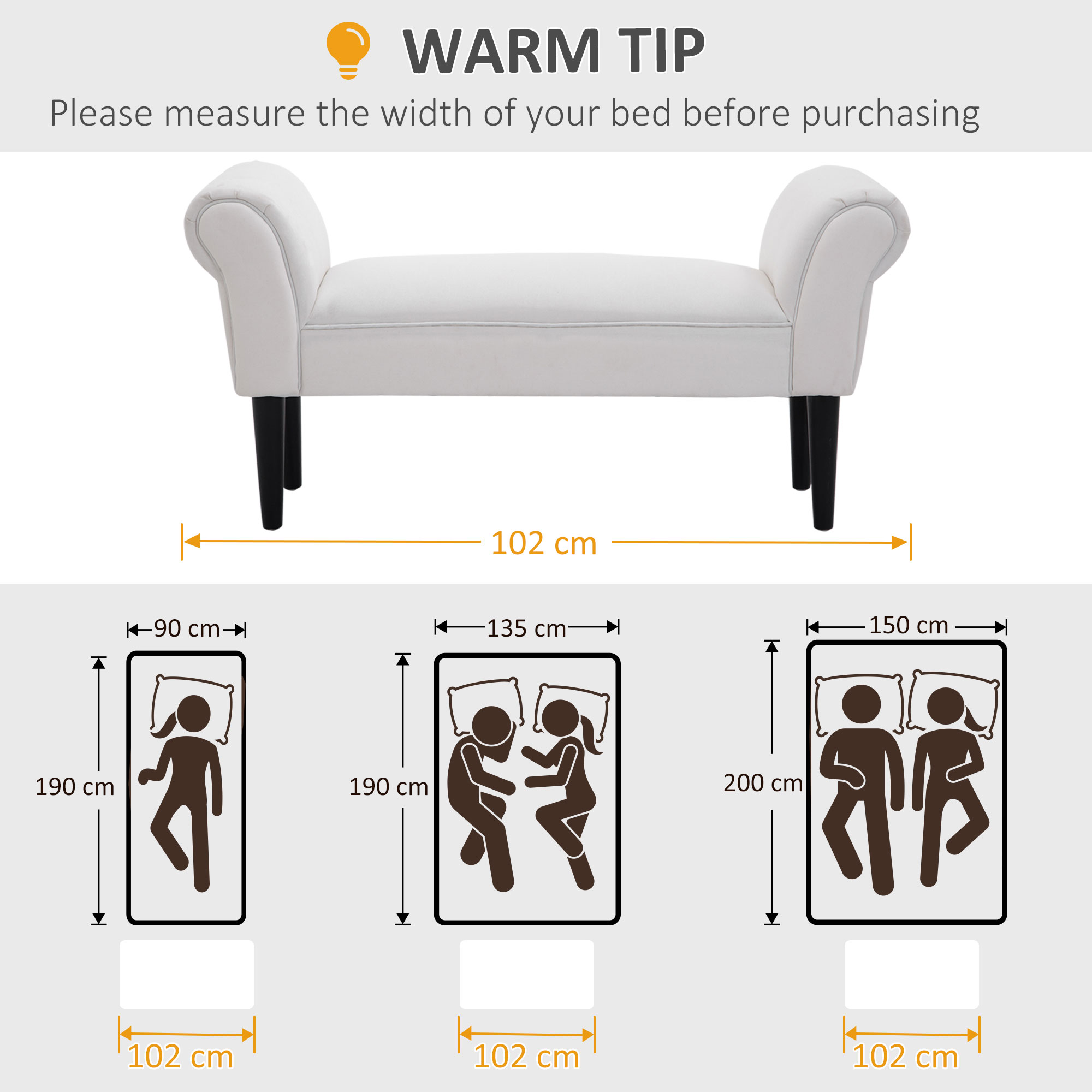 Reinventeaza-ti dormitorul cu aceasta banca tapitata [BRAND NAME]. Conceput pentru a adauga o nota de eleganta mediului dvs., bancheta pentru capatul de pat are captuseala confortabila si, datorita invelisului din material textil, ofera o senzatie de moliciune. Cotierele rulate adauga o nota de eleganta, precum si un plus de confort si siguranta. Nota: Va rugam sa verificati dimensiunea bancii de jos inainte de a cumpara.