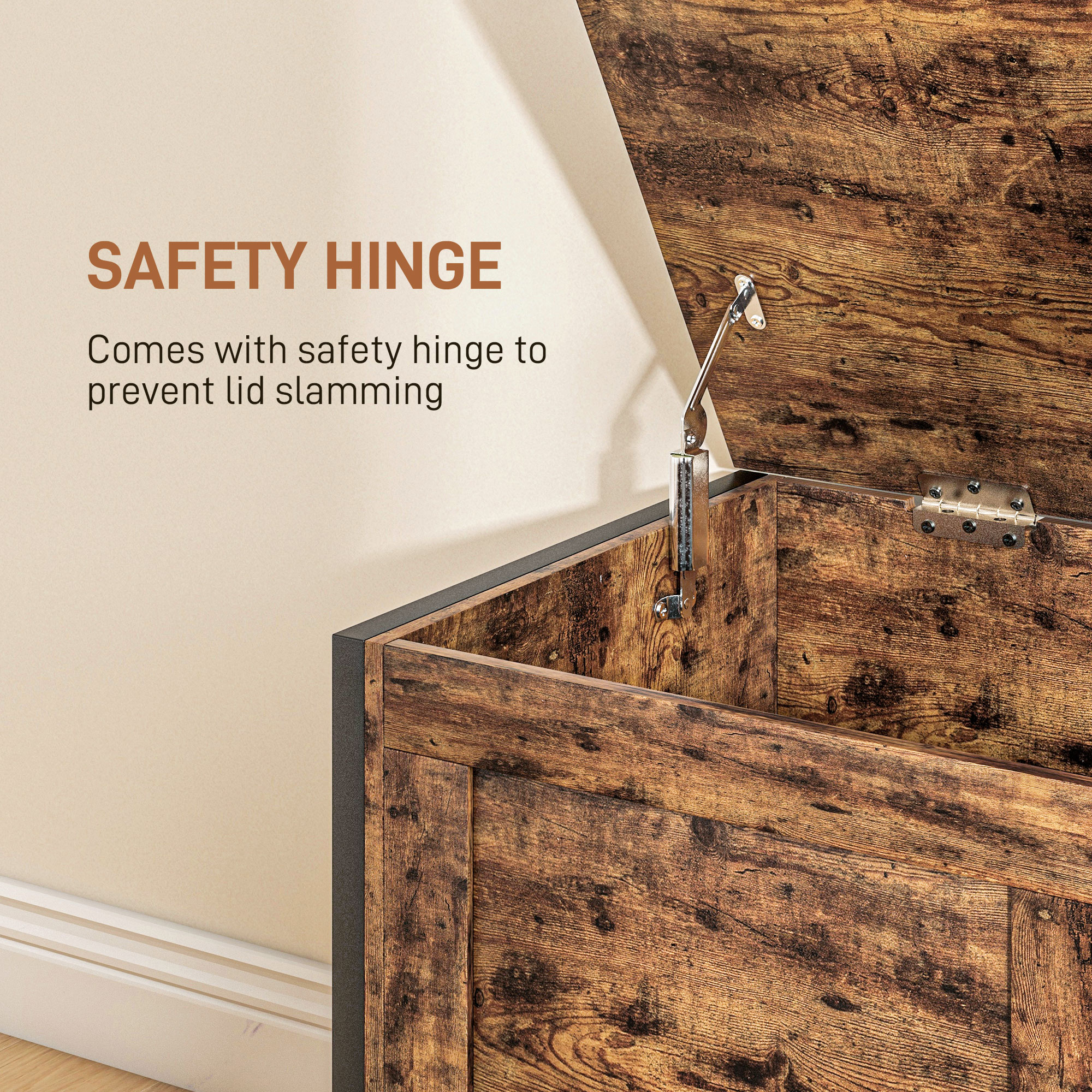 • CAPAC SIGUR: Fiind dotat cu o balama de siguranta, aceasta lada asigura o inchidere lenta si sigura a capacului, prevenind inchiderile bruste si periculoase.